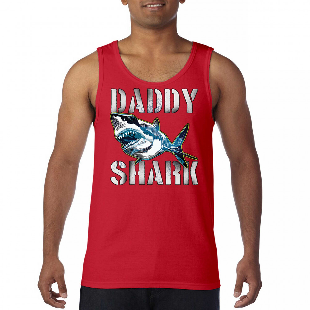 DADDY SHARK FUNNY FATHER'S DAY tank top funny dad joke grandpa papa men's top red