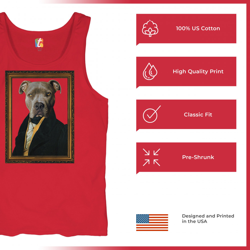Add a touch of humor and class to your decor with our pit bull portrait in 18th-century attire. This delightful design merges the playful charm of pit bulls with the sophisticated style of historical portraits. Perfect for pet lovers and history buffs alike, it brings a unique and artistic flair to any space. Available in various sizes and printed on high-quality material, this portrait promises lasting appeal and enjoyment. It also makes a thoughtful gift for friends and family who appreciate quirky and artistic home decor.