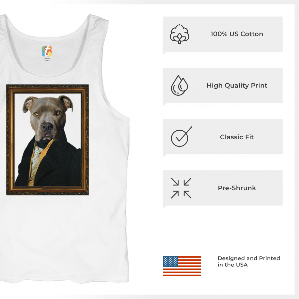 Add a touch of humor and class to your decor with our pit bull portrait in 18th-century attire. This delightful design merges the playful charm of pit bulls with the sophisticated style of historical portraits. Perfect for pet lovers and history buffs alike, it brings a unique and artistic flair to any space. Available in various sizes and printed on high-quality material, this portrait promises lasting appeal and enjoyment. It also makes a thoughtful gift for friends and family who appreciate quirky and artistic home decor.