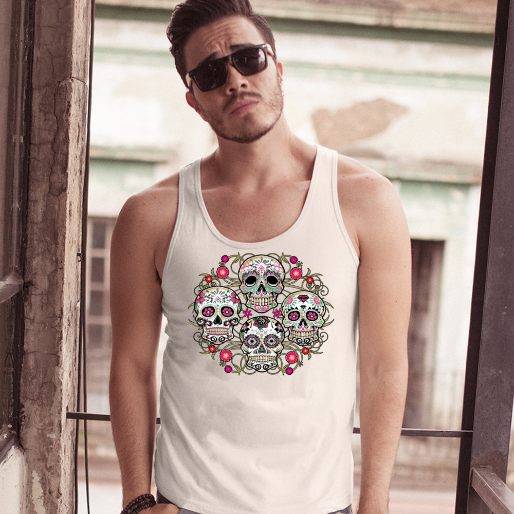 DAY OF THE DEAD FLORAL SUGAR SKULLS tank top dia de los muertos men's top white