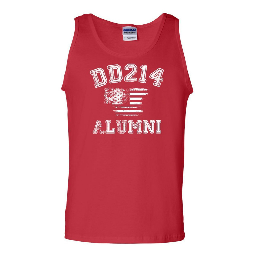 DD214 ALUMNI distressed american flag tank top military veteran sleeveless red