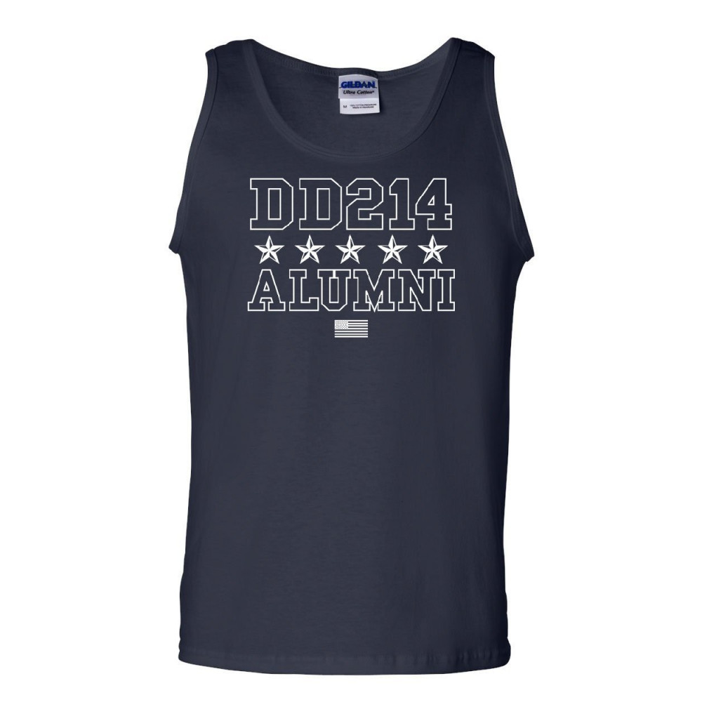 DD214 ALUMNI MILITARY dd214 alumni tank top patriotic military soldier veteran us flag sleeveless navy blue