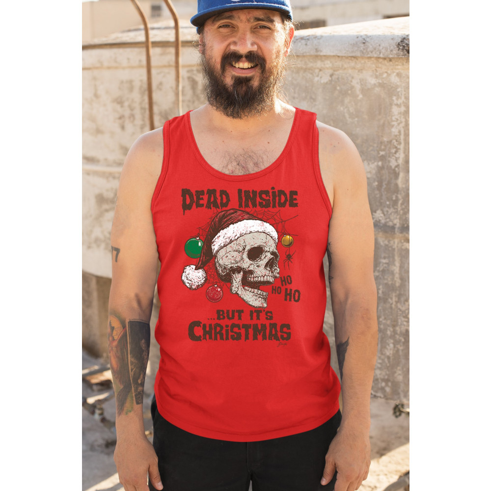 Dark humor Christmas skull with Santa hat and ornaments. Perfect for sarcastic, gothic, and edgy holiday fans who like festive irony.