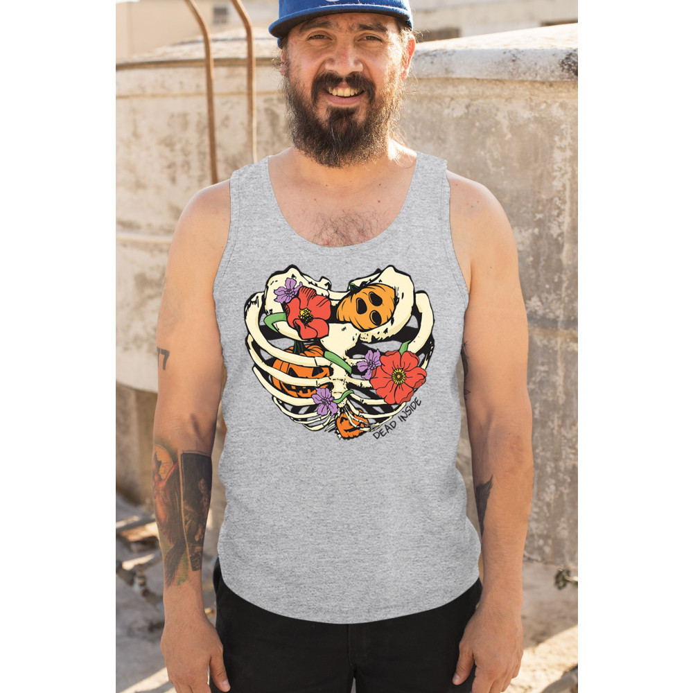 Celebrate Halloween with a quirky and cute design featuring a skeleton ribcage filled with pumpkins and flowers. Perfect for spooky season lovers!