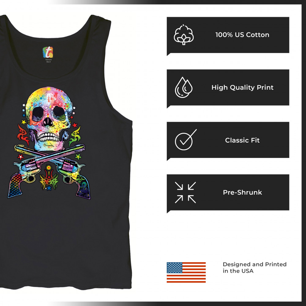 DEAN RUSSO ART SKULL AND GUNS tank top colorful 2nd amendment men's top black