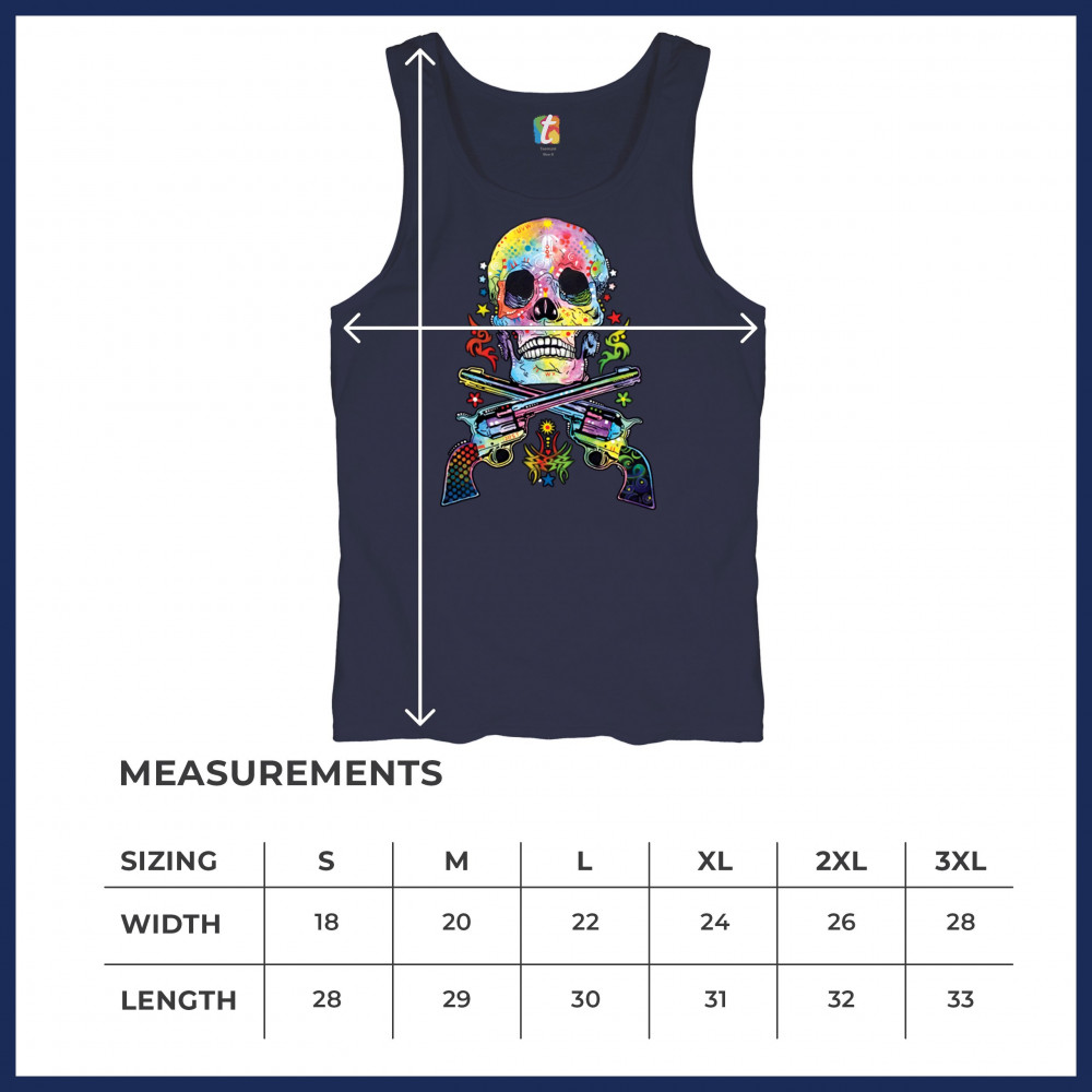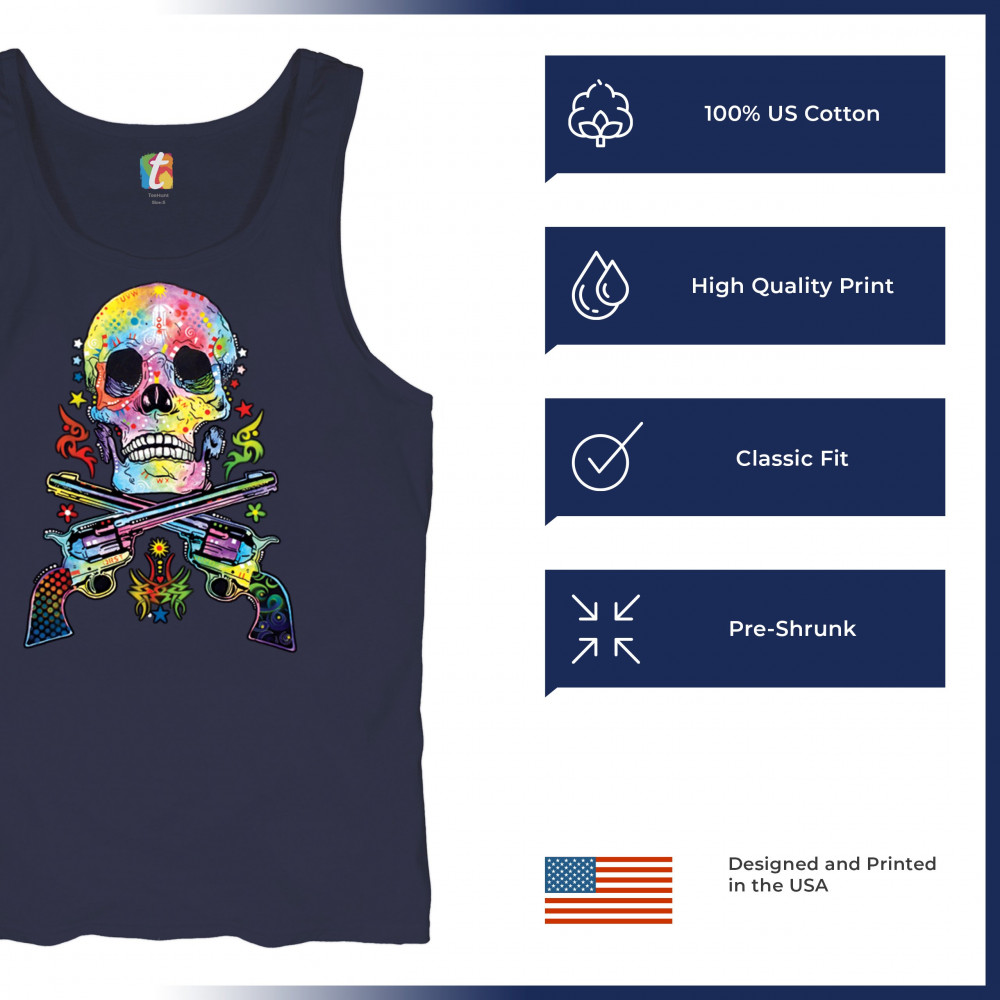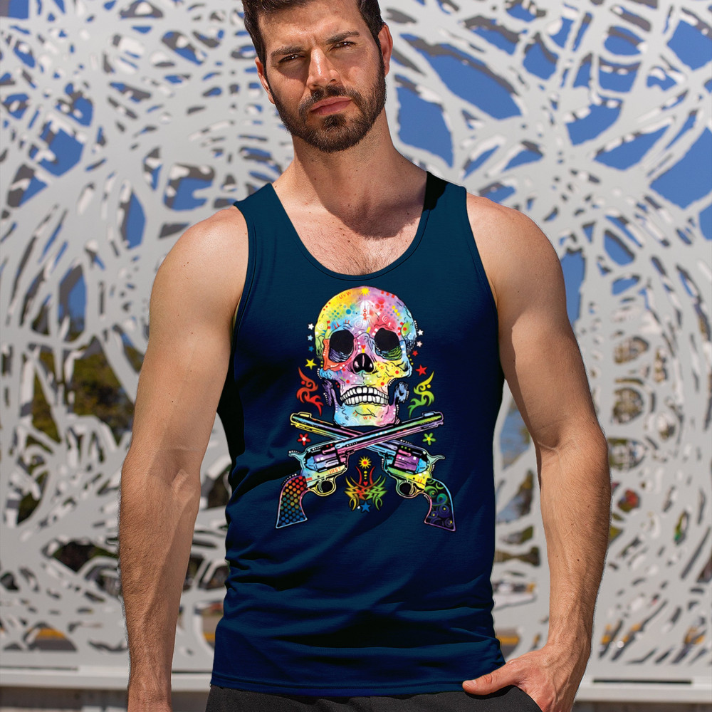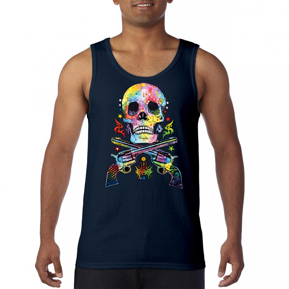 DEAN RUSSO ART SKULL AND GUNS tank top colorful 2nd amendment men's top navy blue
