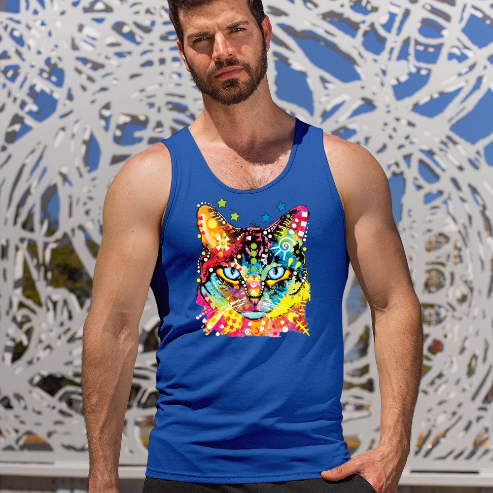 DEAN RUSSO BLUE EYES CAT tank top colorful cute kitten pet men's top royal blue