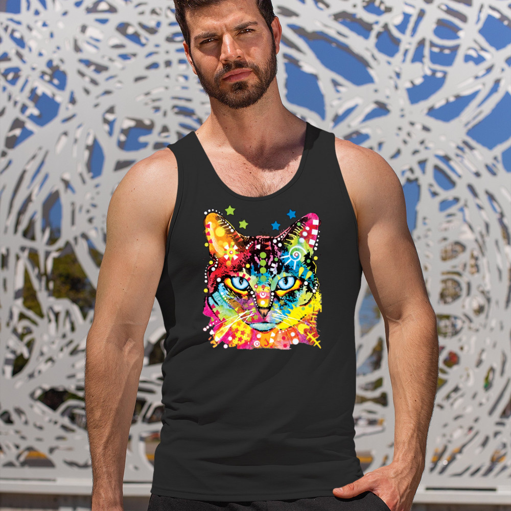 DEAN RUSSO BLUE EYES CAT tank top colorful cute kitten pet men's top black
