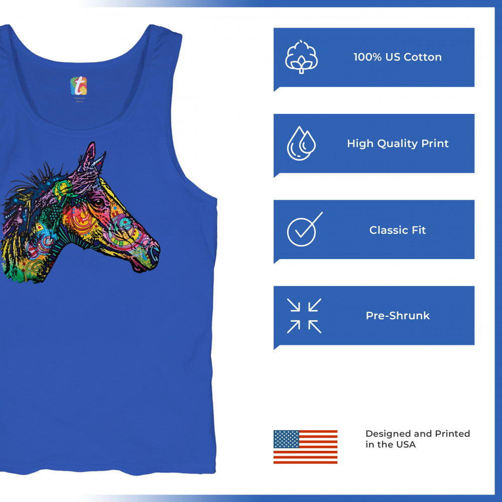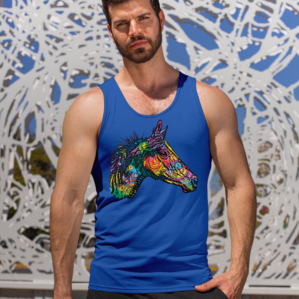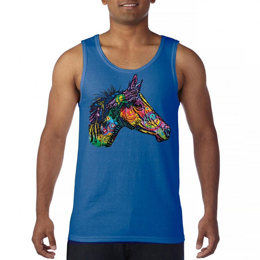 DEAN RUSSO COLORFUL HORSE tank top neon mosaic wild mustang animal men's top royal blue