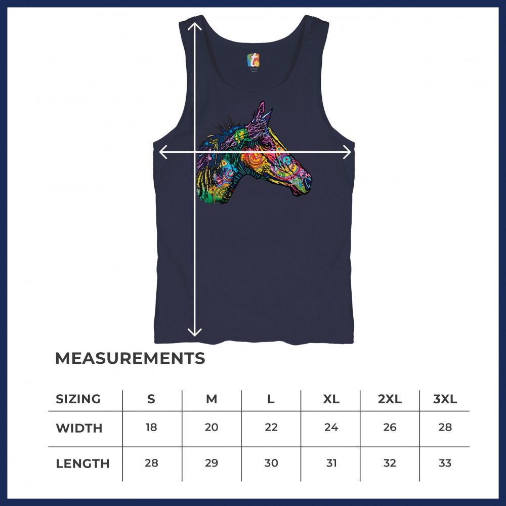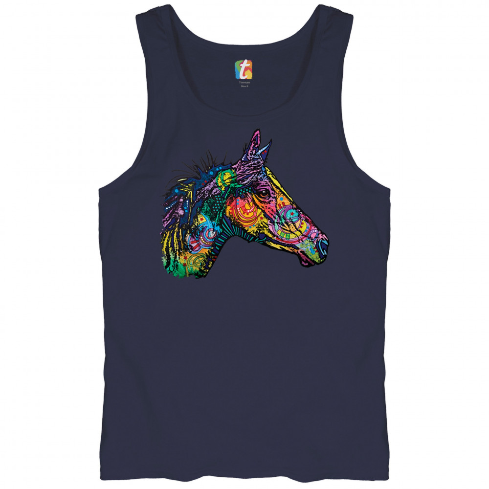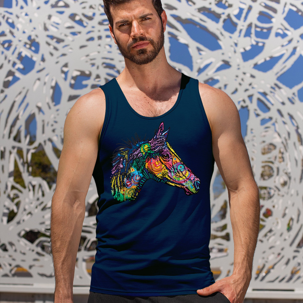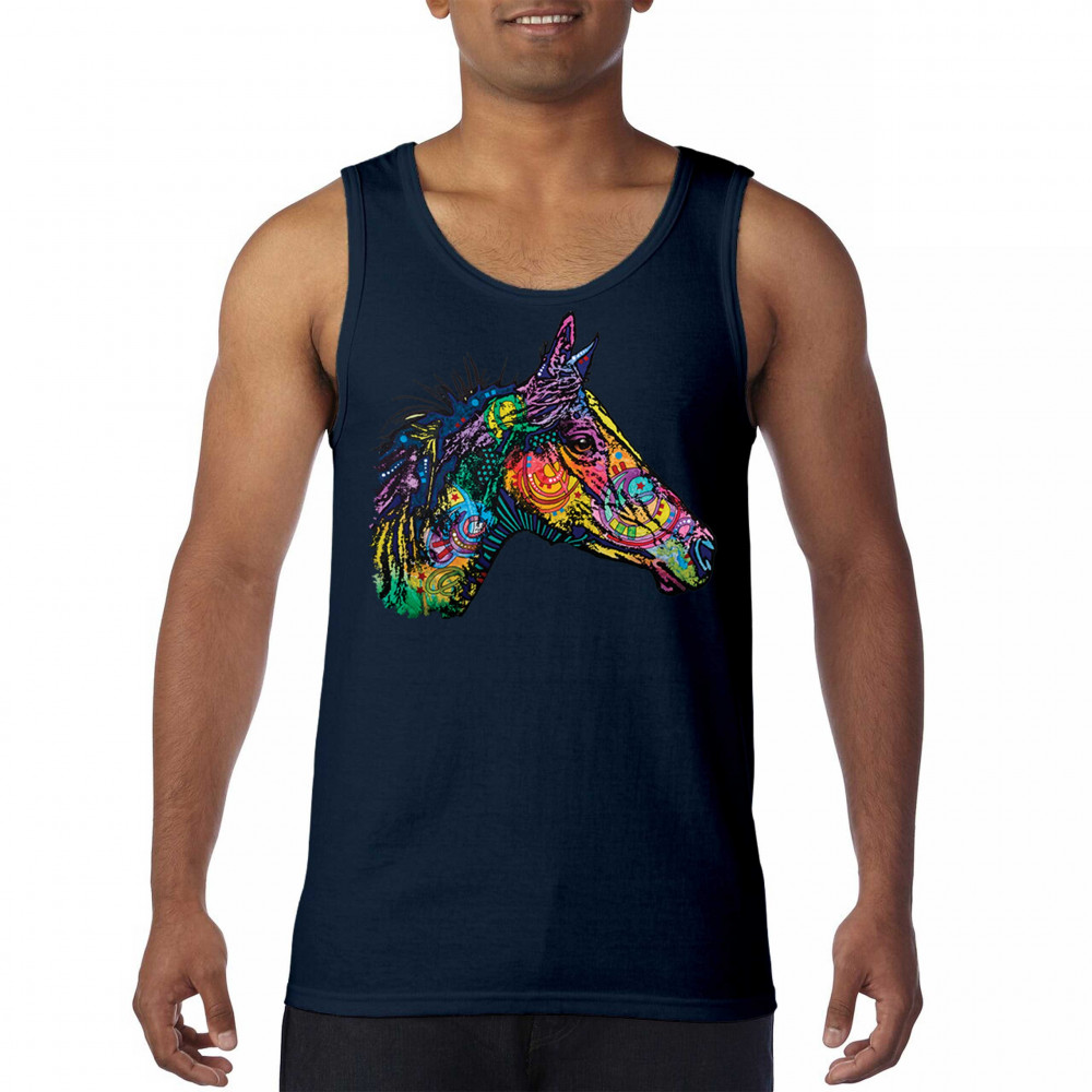 DEAN RUSSO COLORFUL HORSE tank top neon mosaic wild mustang animal men's top navy blue