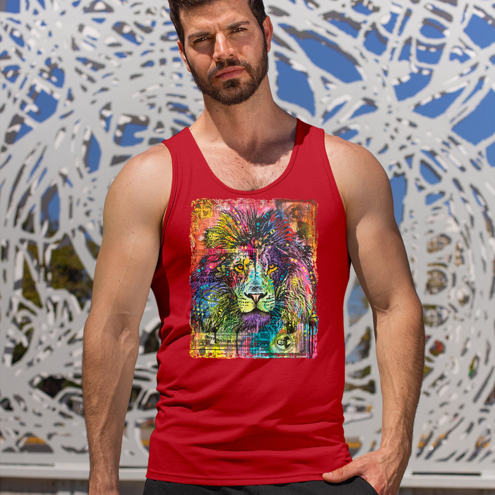 DEAN RUSSO COLORFUL LION HEAD tank top wild life king roar big cat men's top red