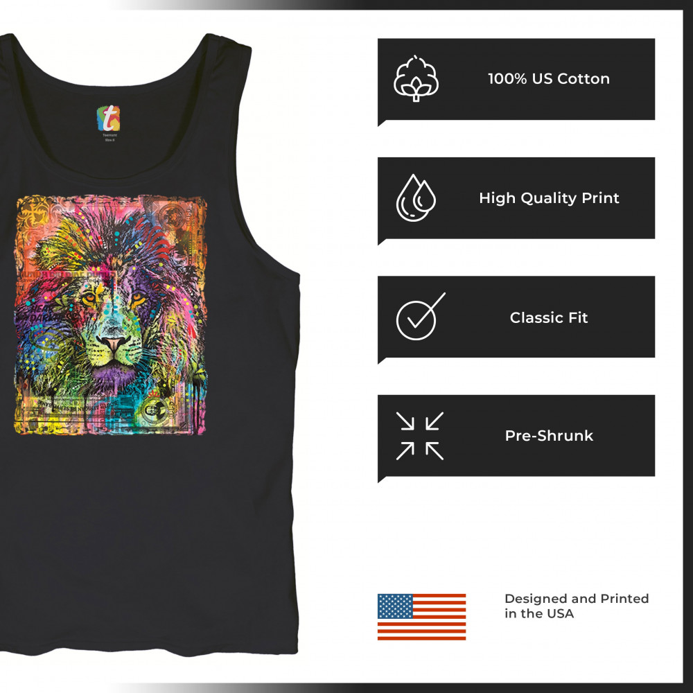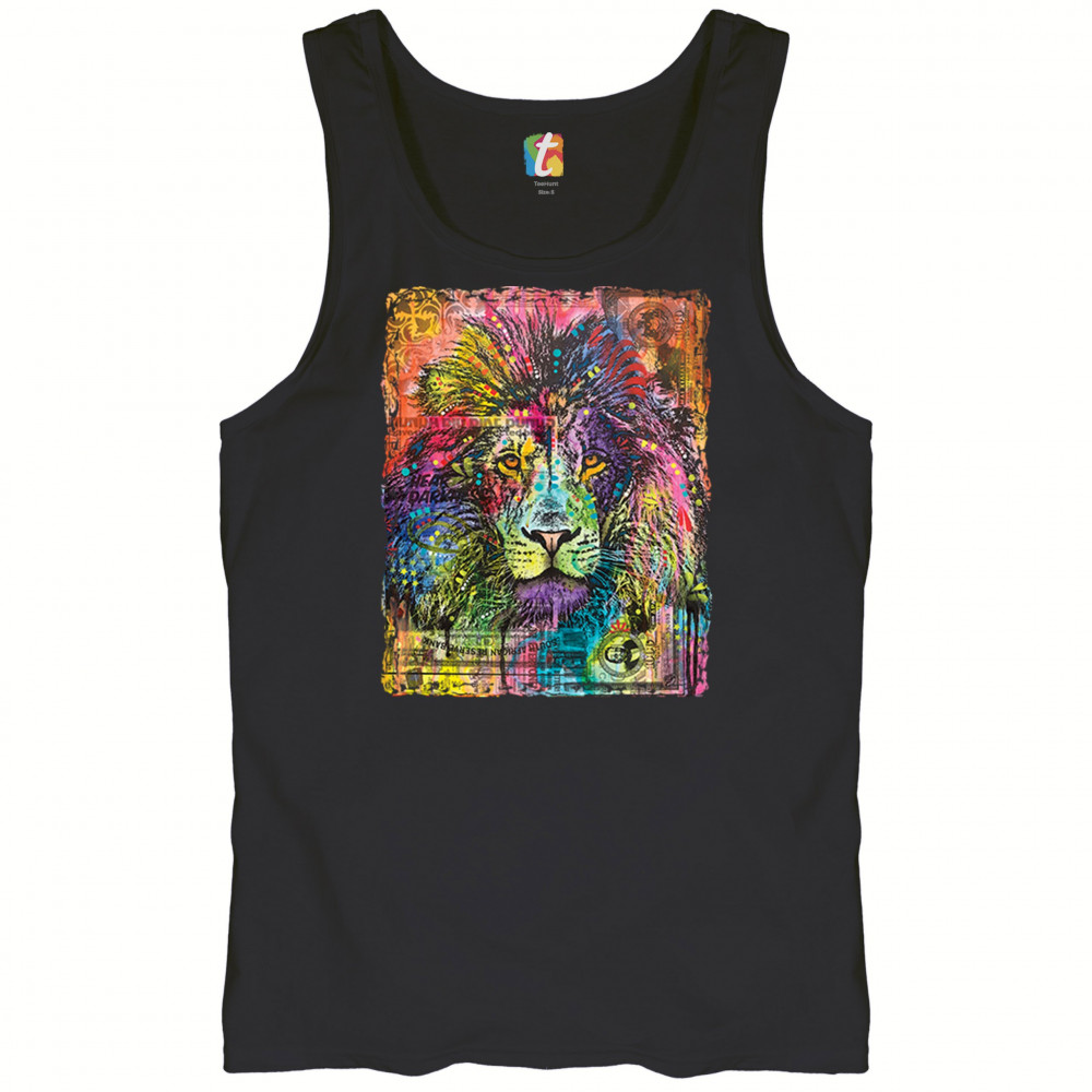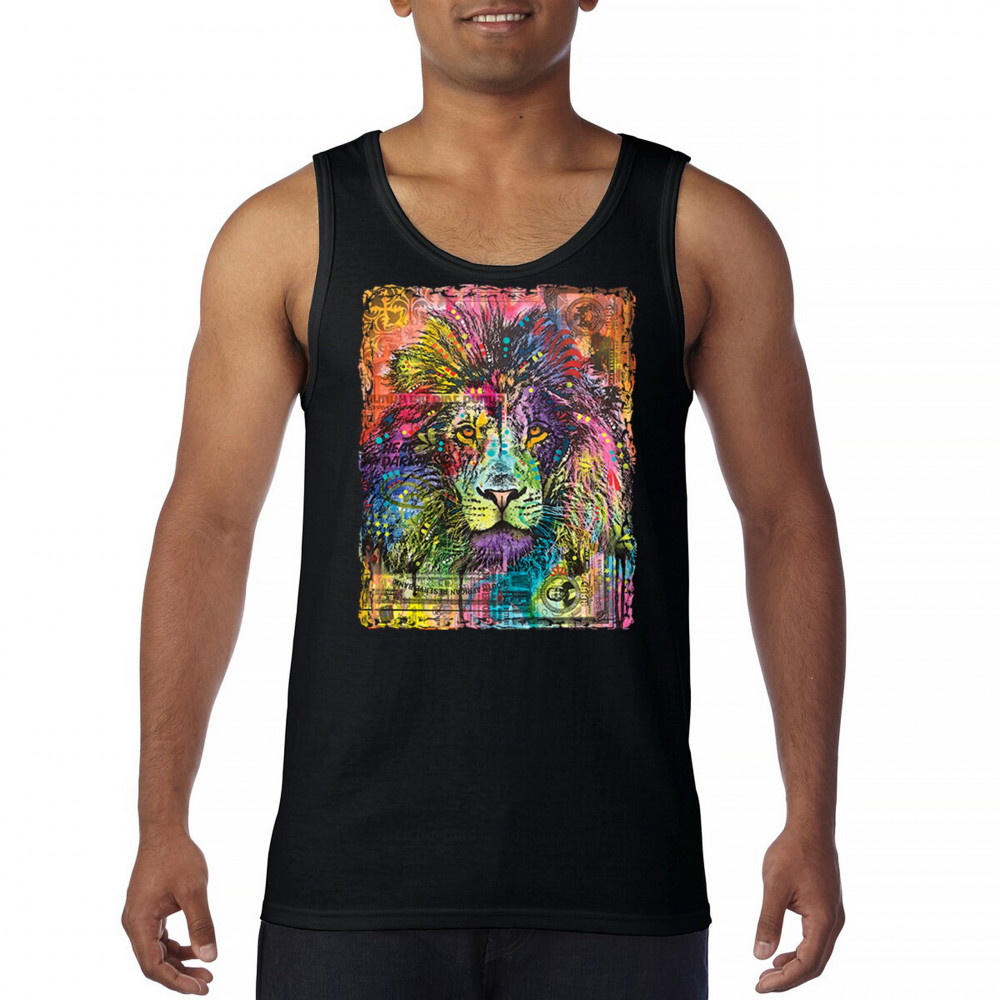 DEAN RUSSO COLORFUL LION HEAD tank top wild life king roar big cat men's top black