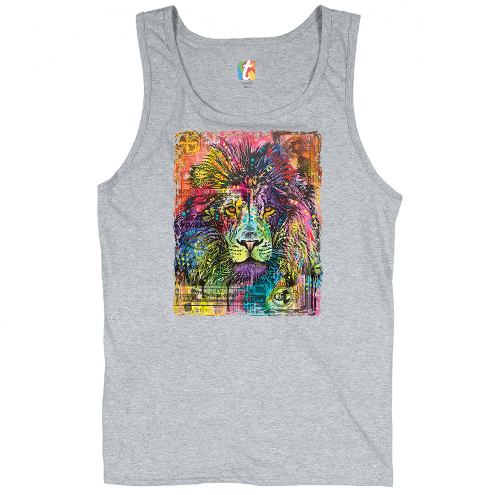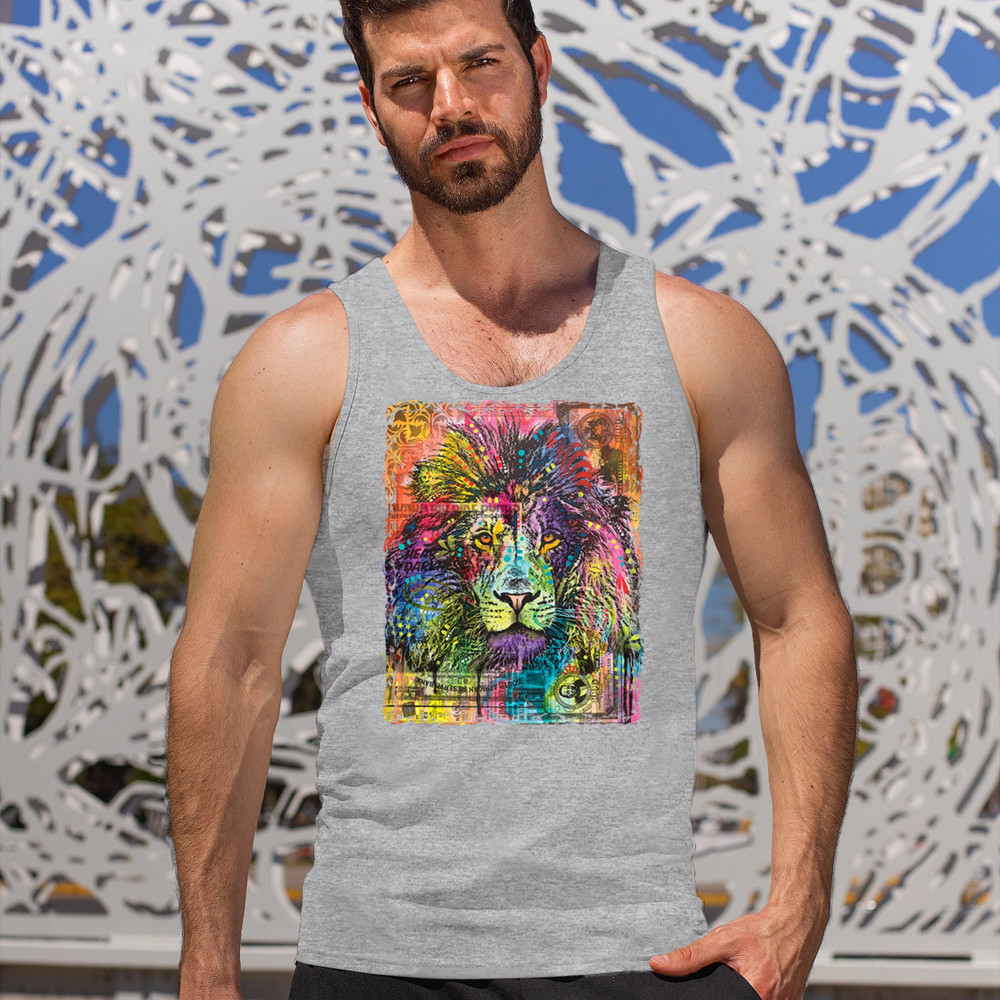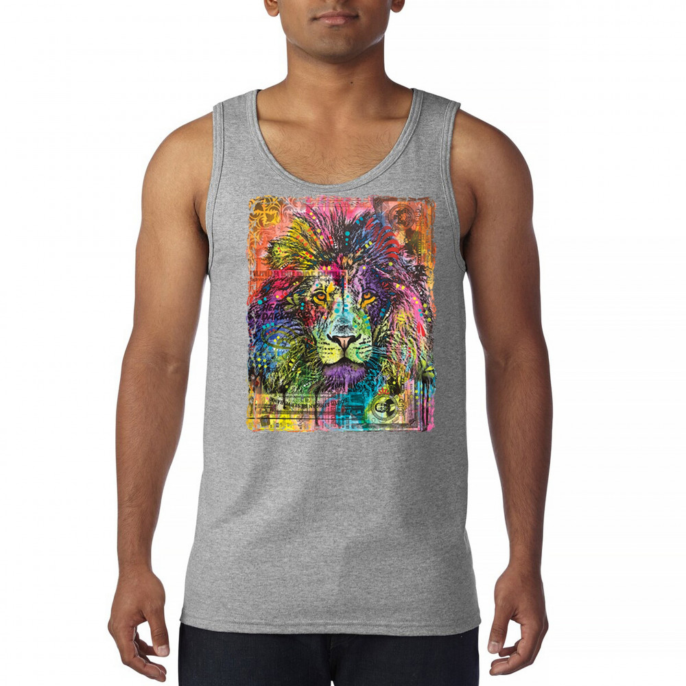 DEAN RUSSO COLORFUL LION HEAD tank top wild life king roar big cat men's top gray