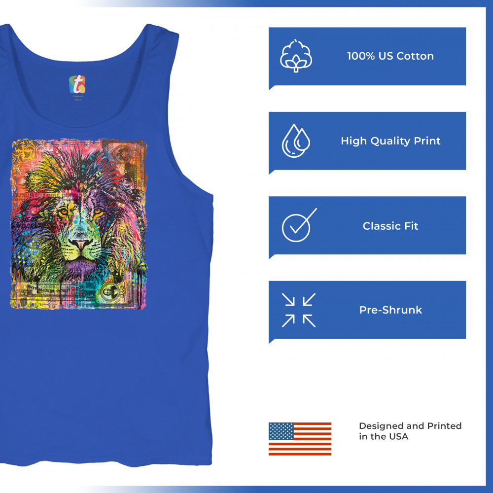 DEAN RUSSO COLORFUL LION HEAD tank top wild life king roar big cat men's top royal blue