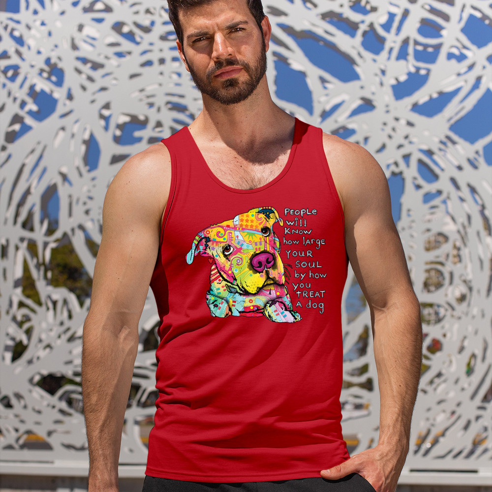 DEAN RUSSO COLORFUL NEON DOG tank top how large your soul is pet men's top red