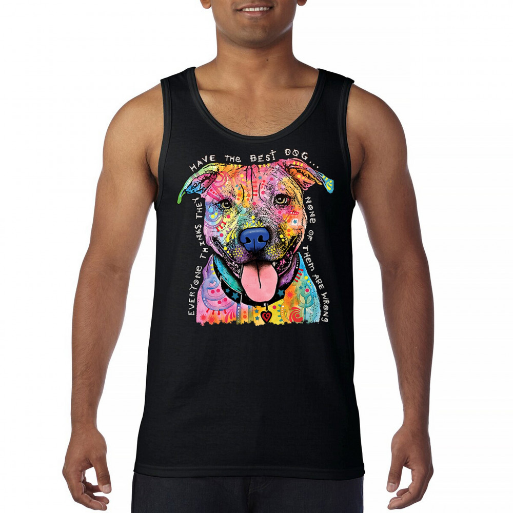 DEAN RUSSO COLORFUL PIT BULL tank top everyone has best dogs men's top black