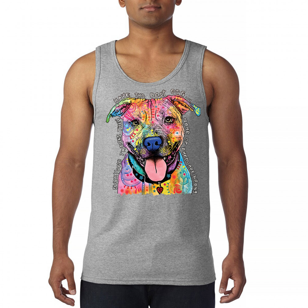 DEAN RUSSO COLORFUL PIT BULL tank top everyone has best dogs men's top gray