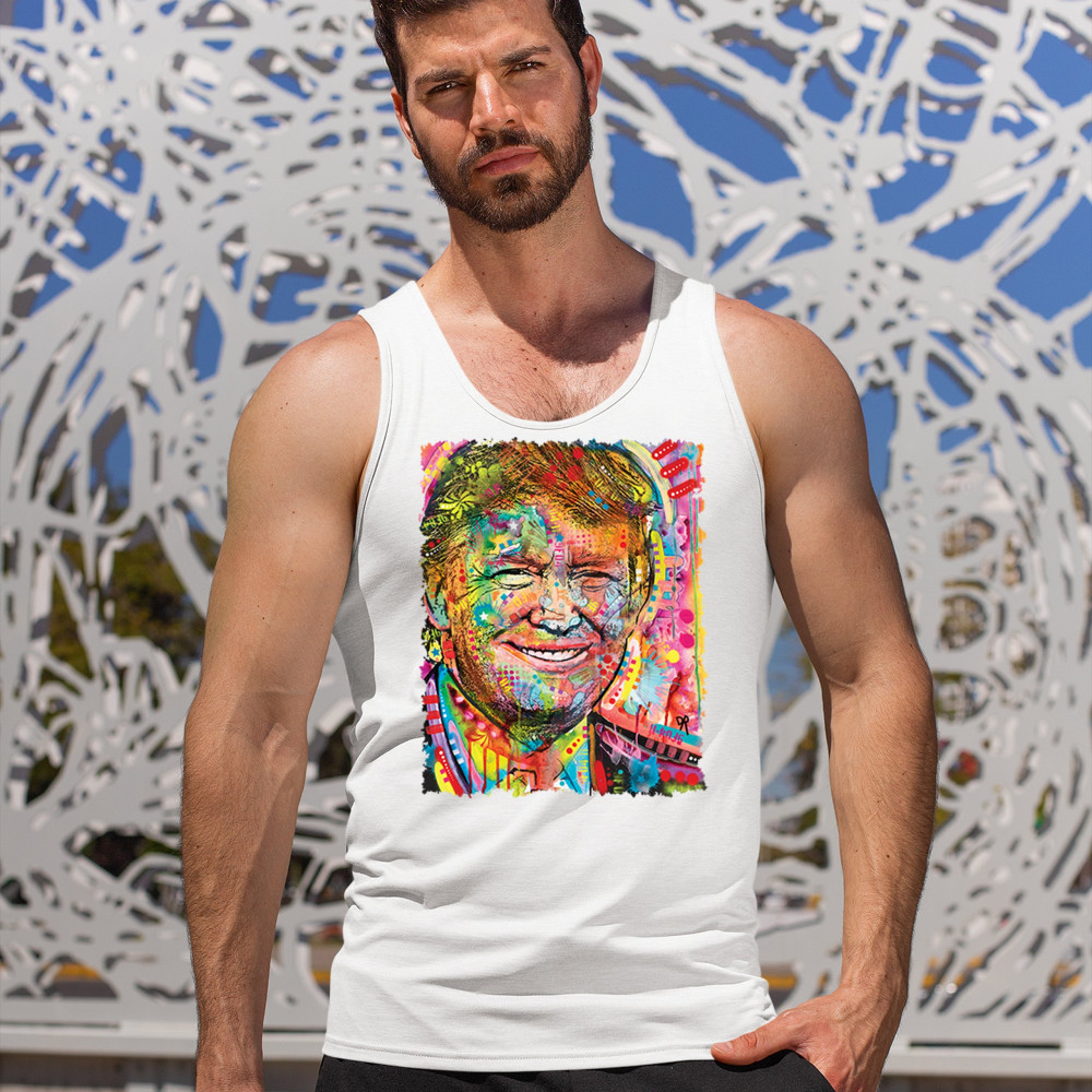 DEAN RUSSO COLORFUL TRUMP tank top 45 american president 2024 men's top white
