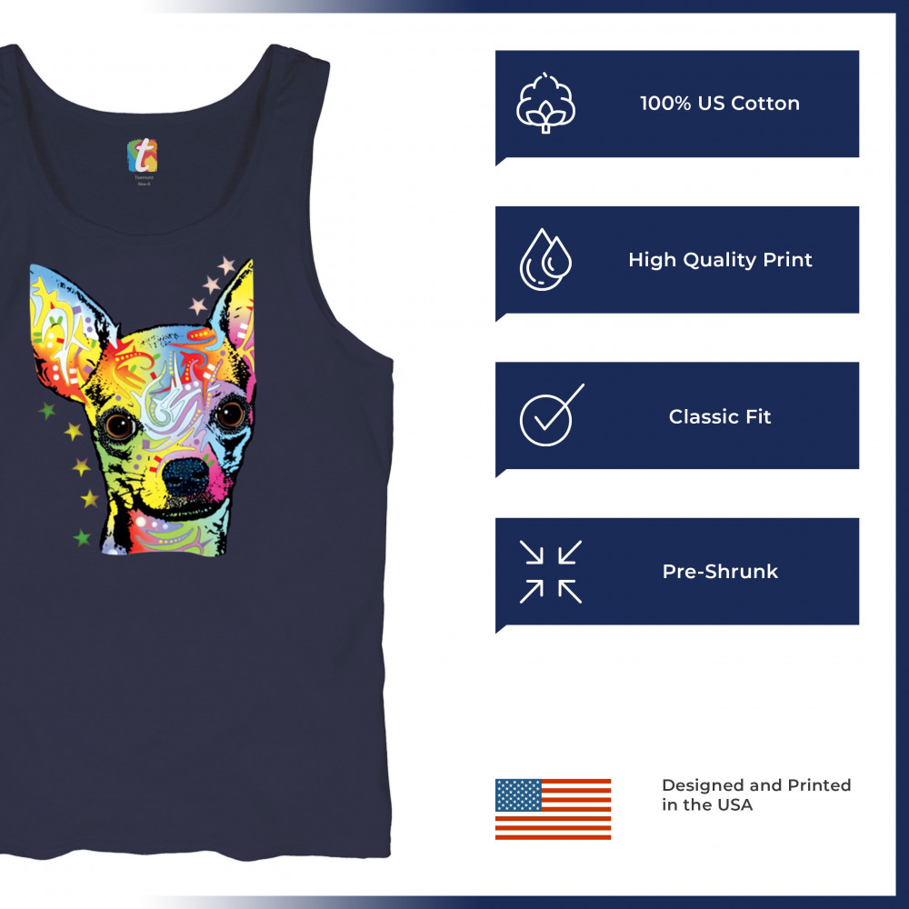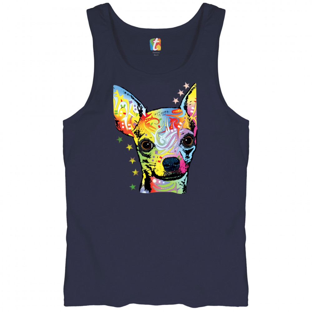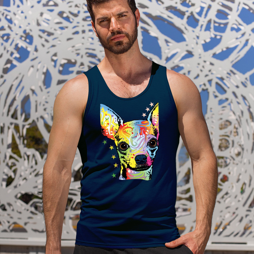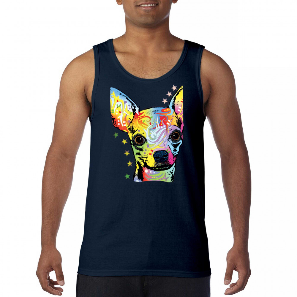 DEAN RUSSO CUTE CHIHUAHUA tank top neon colorful small dog pet men's top navy blue