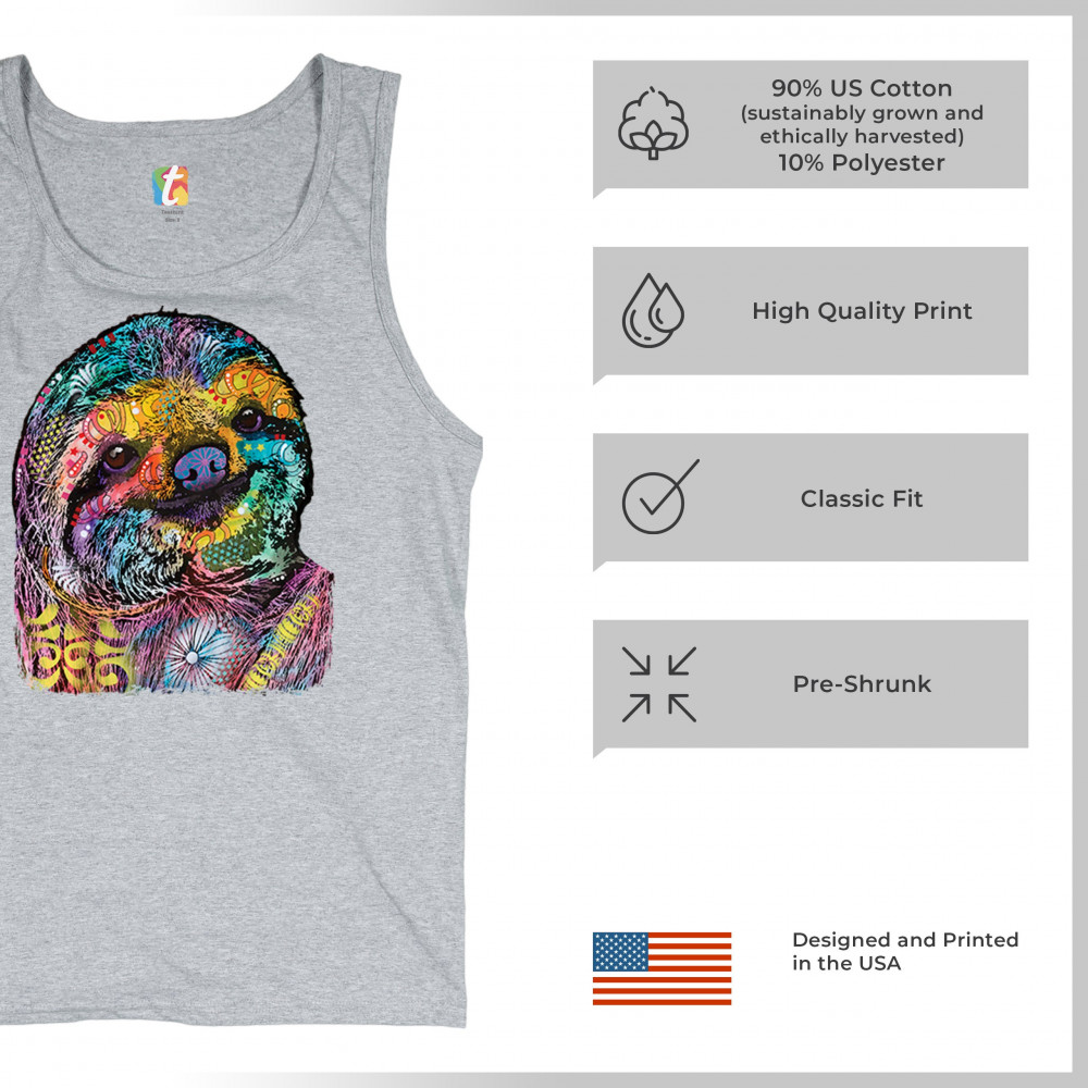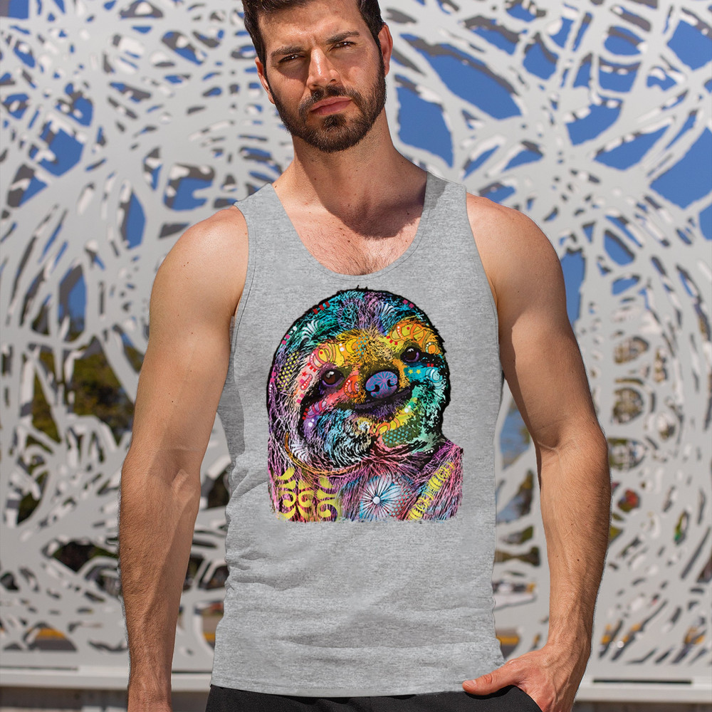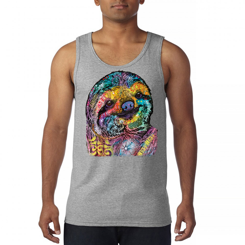 DEAN RUSSO CUTE LAZY SLOTH tank top funny wild life colorful men's top gray