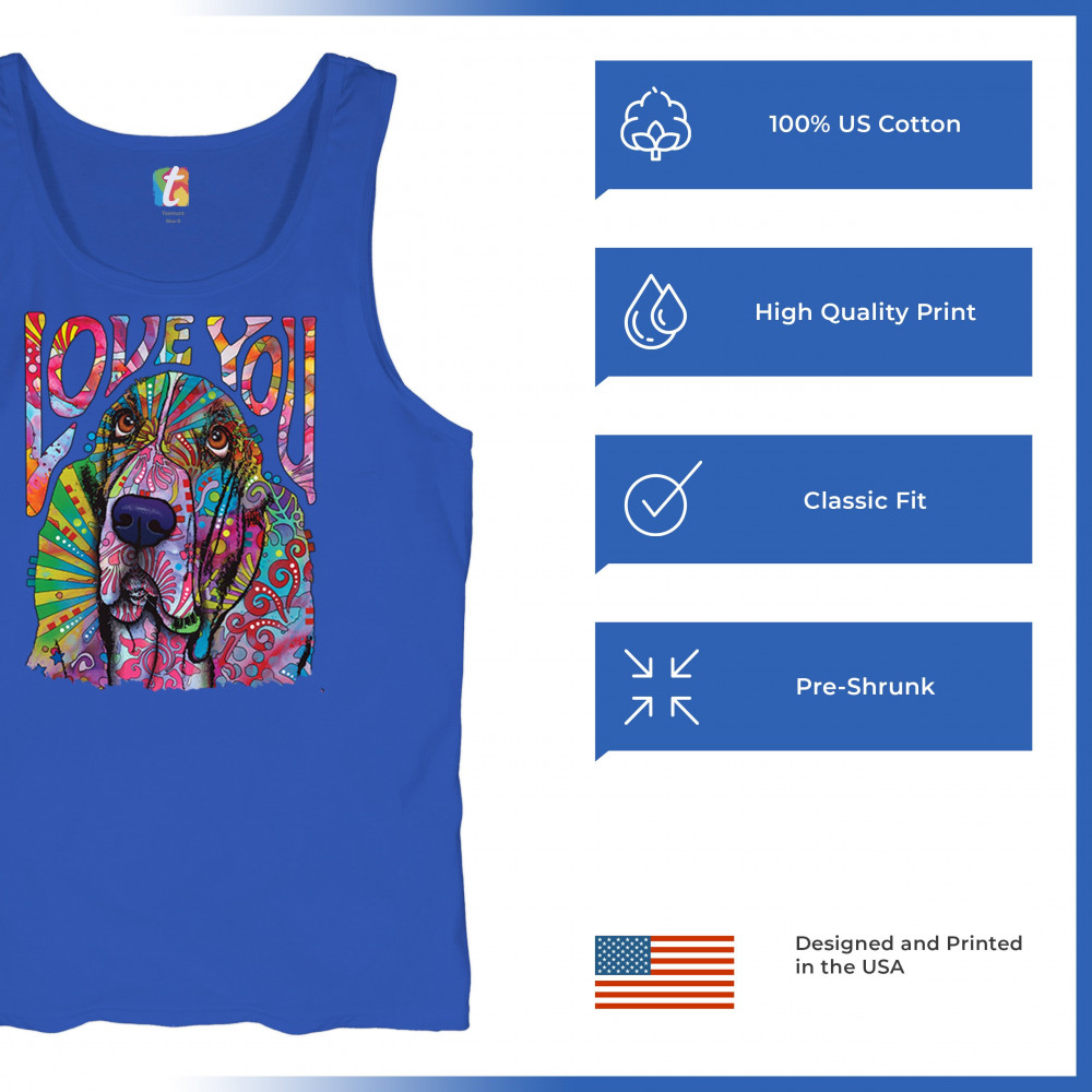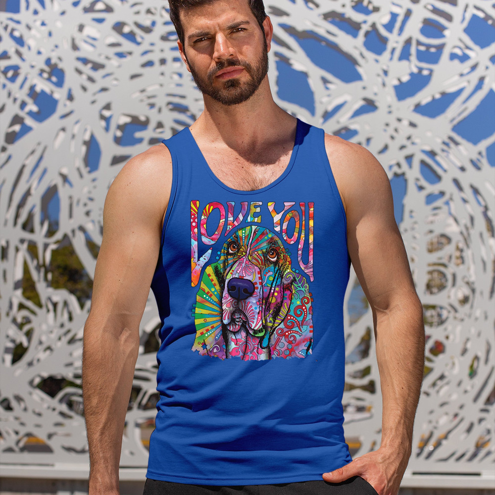 DEAN RUSSO CUTE LOVE YOU BASSET tank top colorful dog neon pet men's top royal blue