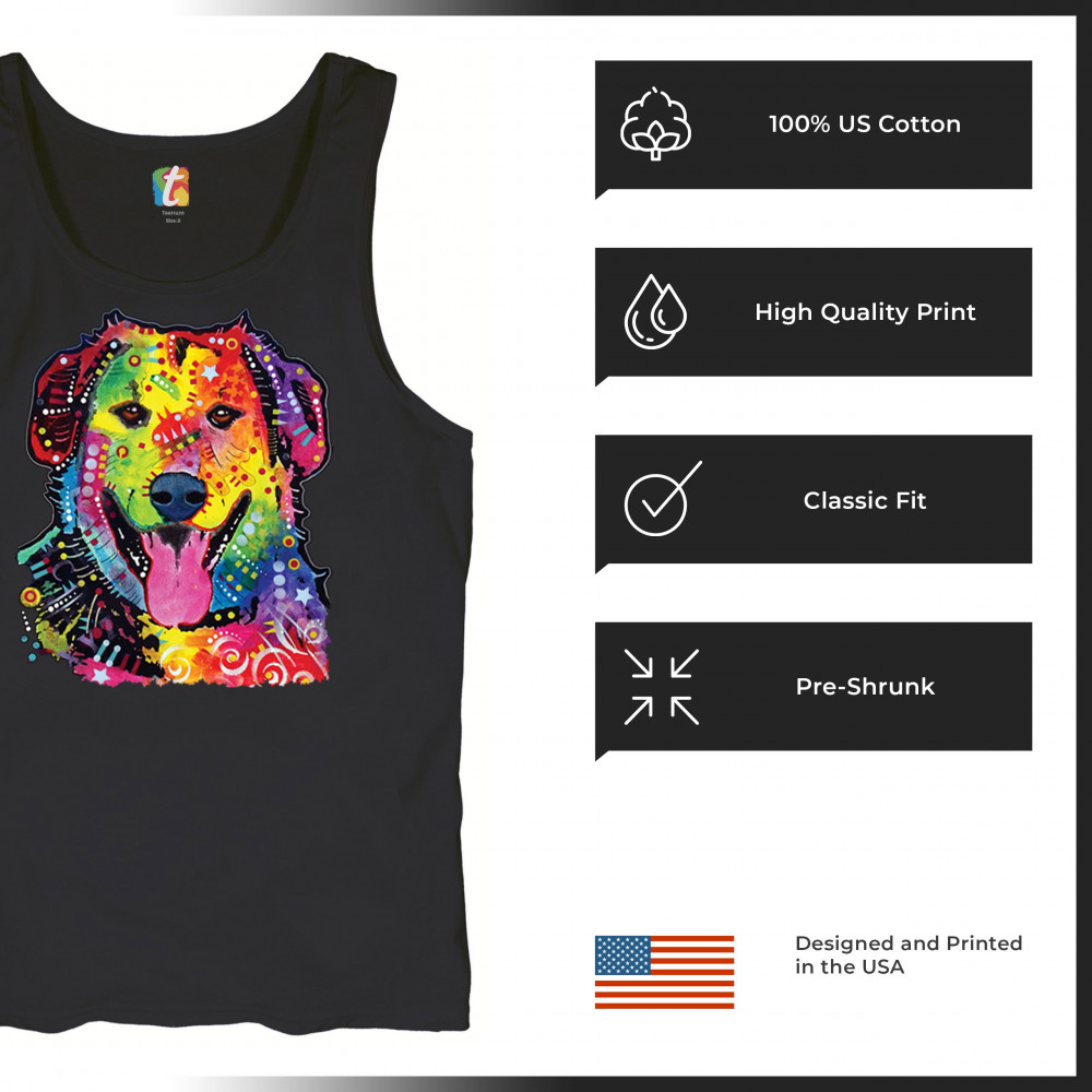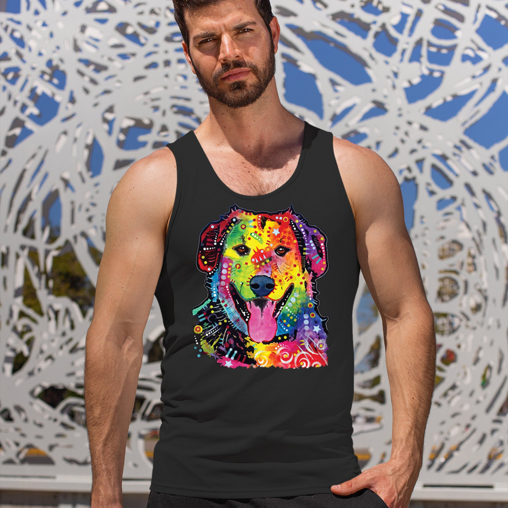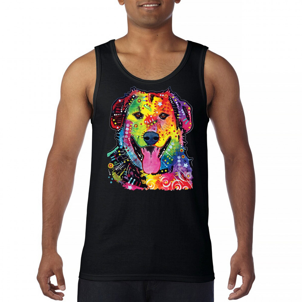 DEAN RUSSO CUTE NEON DOG tank top rescue adopt a pet colorful pet men's top black