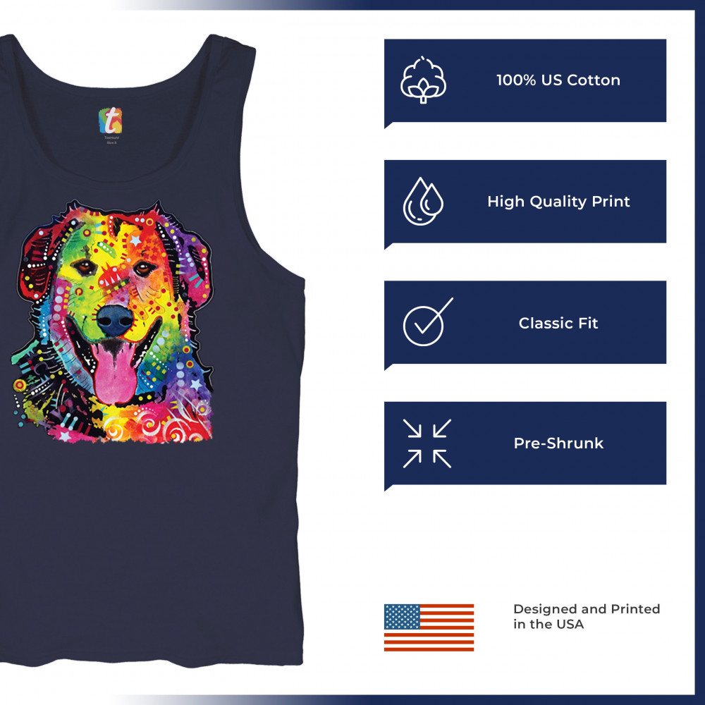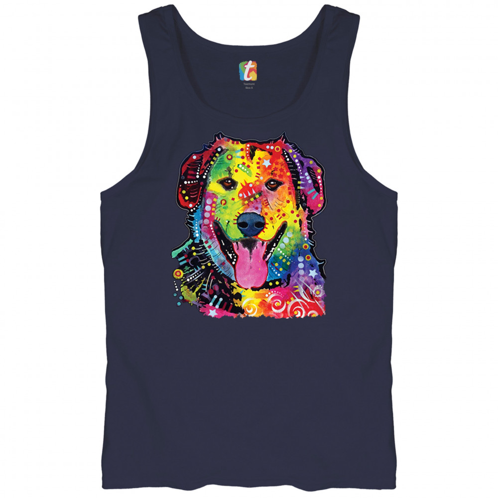 DEAN RUSSO CUTE NEON DOG tank top rescue adopt a pet colorful pet men's top navy blue