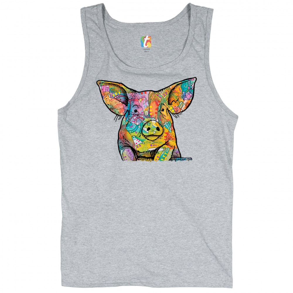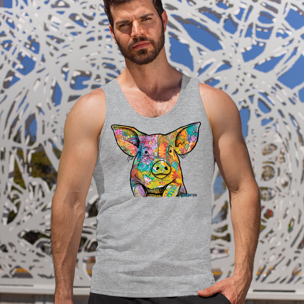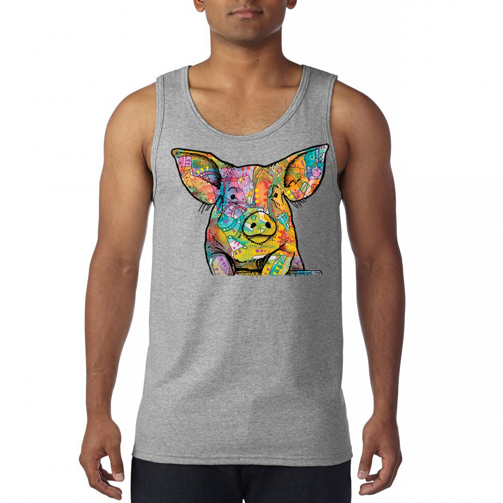 DEAN RUSSO FUNNY CUTE PIG tank top farm piglet lover barn men's top gray