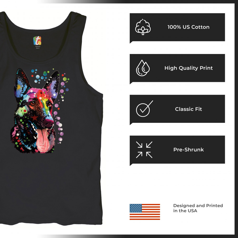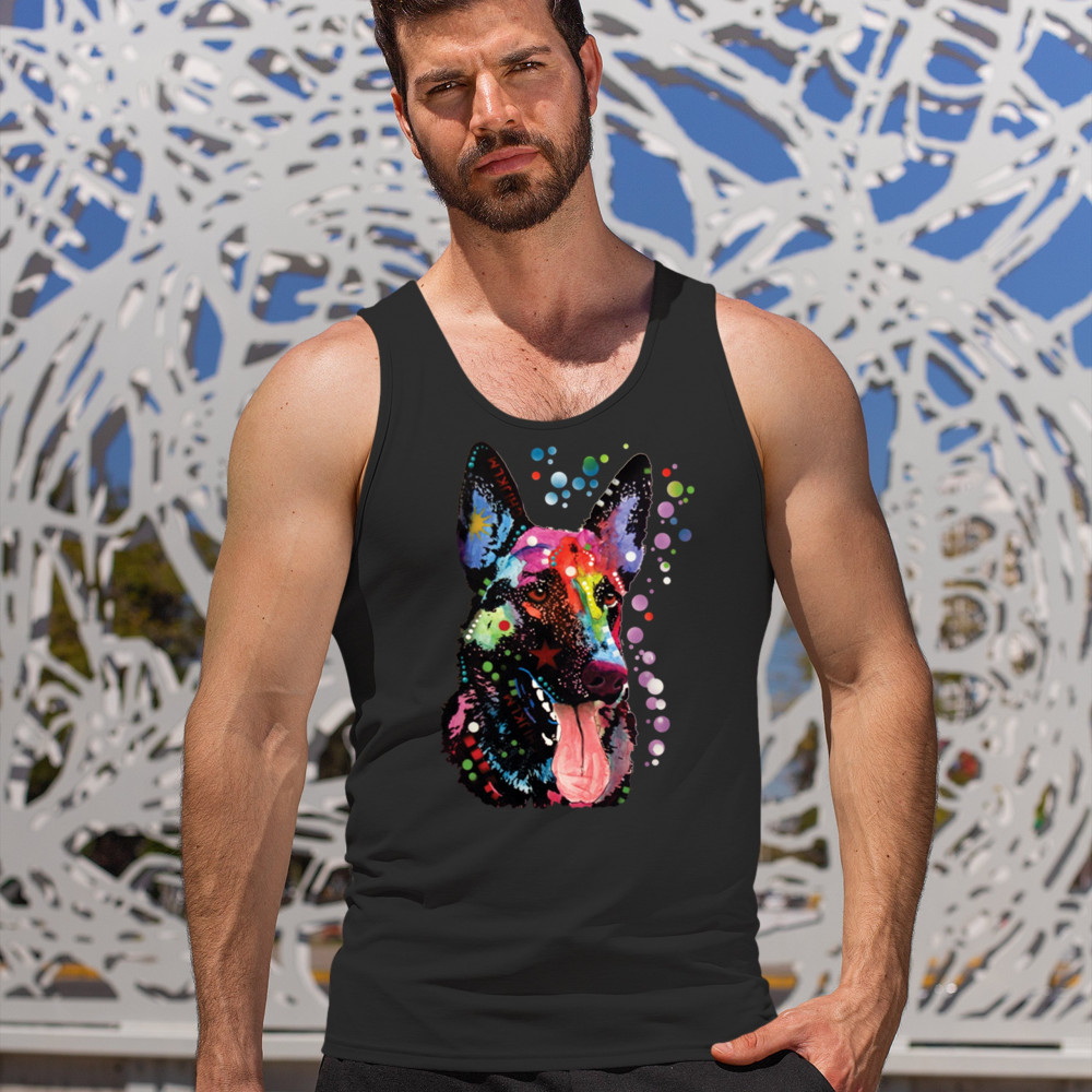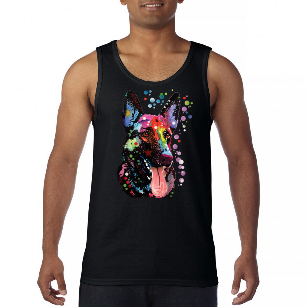 DEAN RUSSO GERMAN SHEPHERD tank top colorful dog best friend men's top black