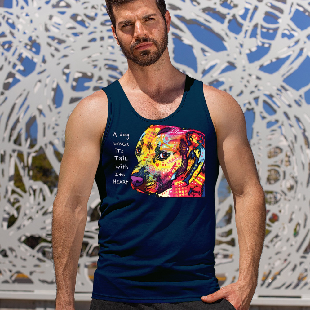 DEAN RUSSO PIT BULL tank top dog wags its tail with its heart men's top navy blue