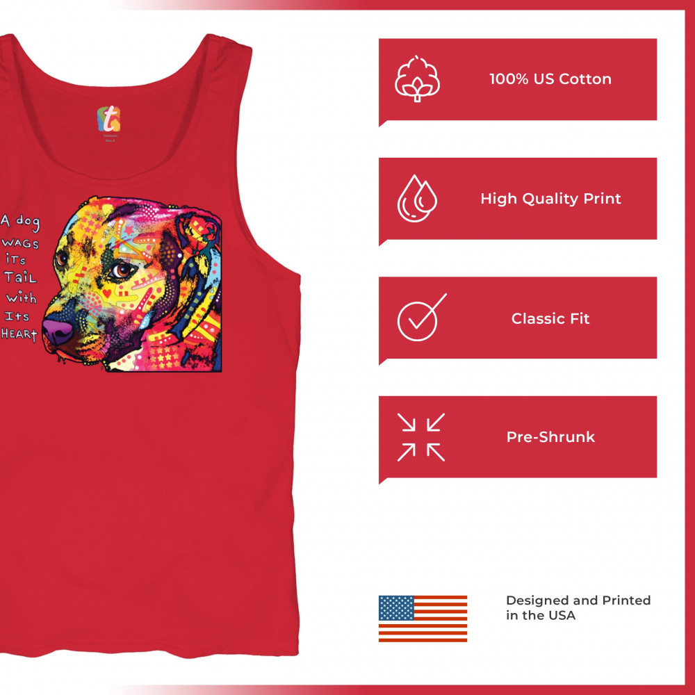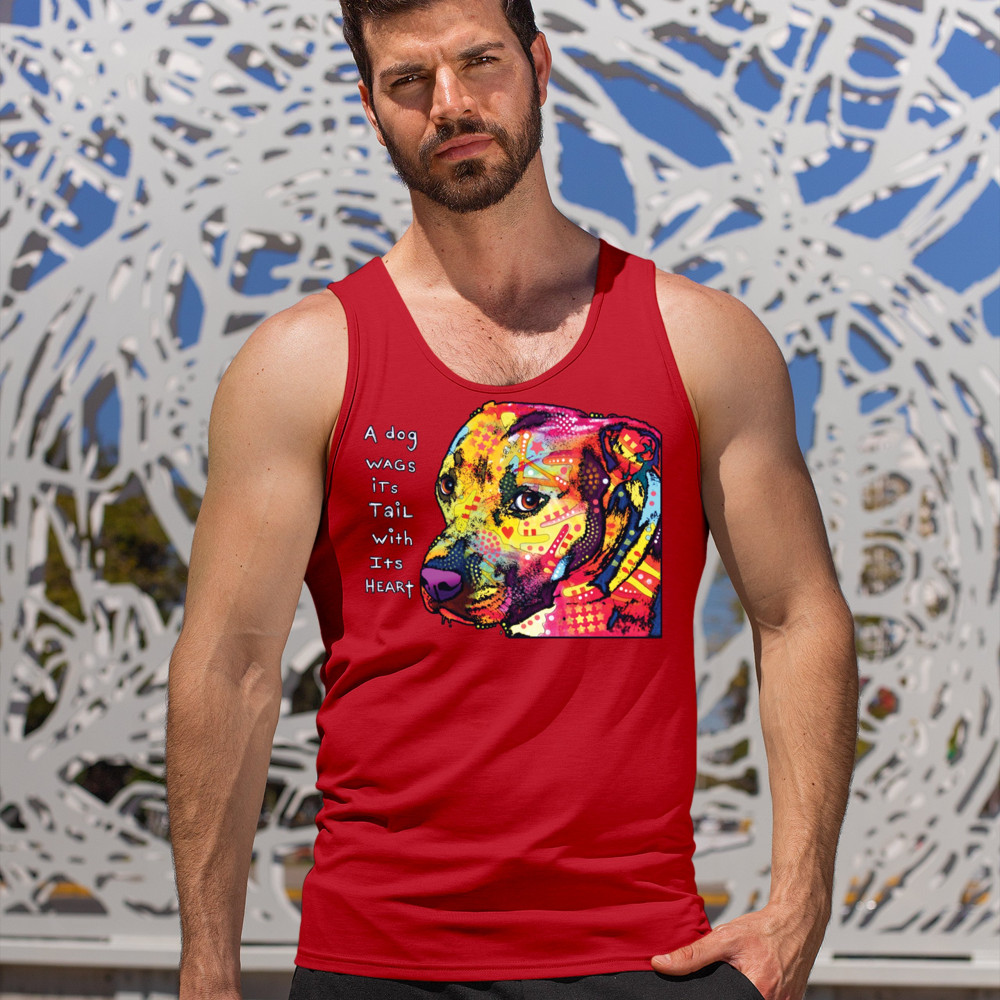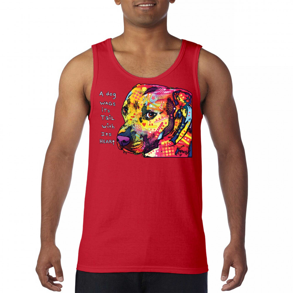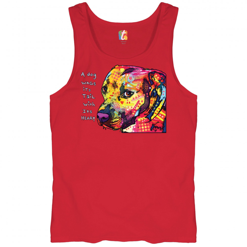 DEAN RUSSO PIT BULL tank top dog wags its tail with its heart men's top red