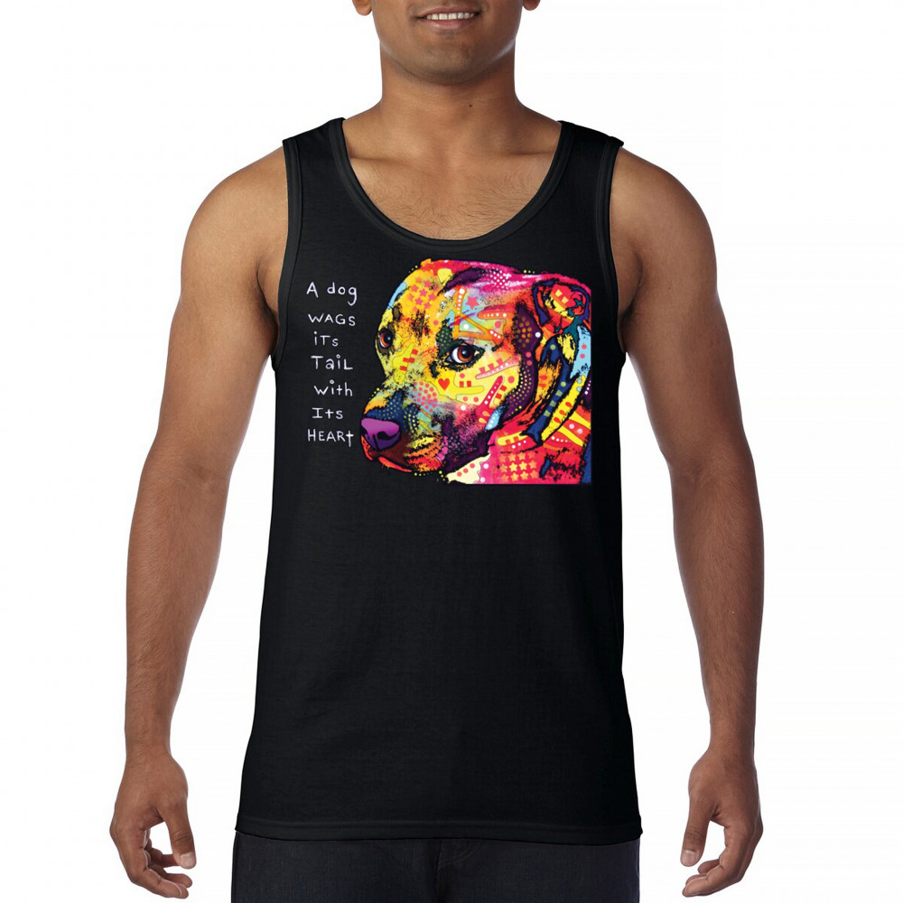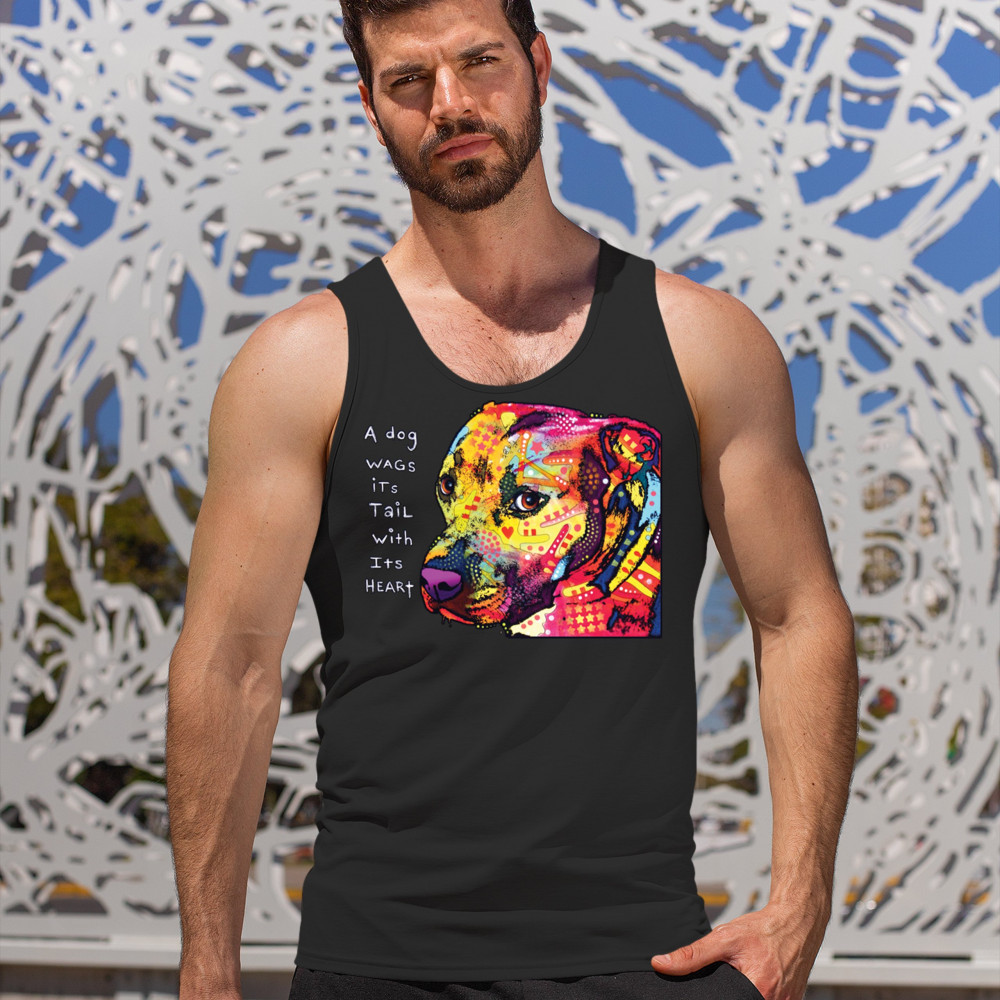 DEAN RUSSO PIT BULL tank top dog wags its tail with its heart men's top black
