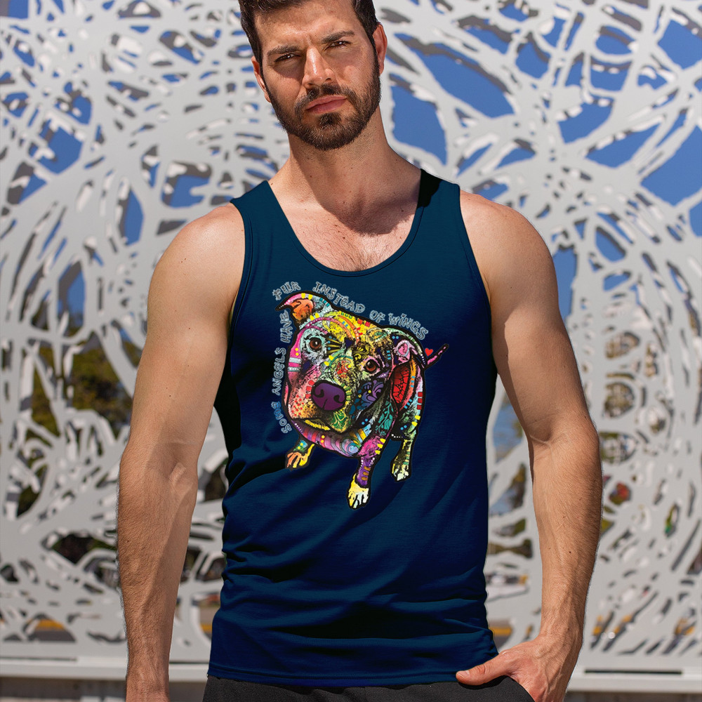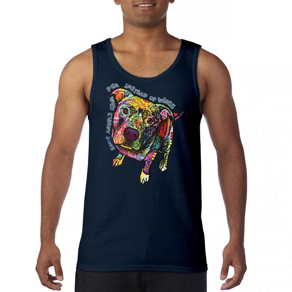 DEAN RUSSO PIT BULL tank top some angels have fur instead of wings men's top navy blue