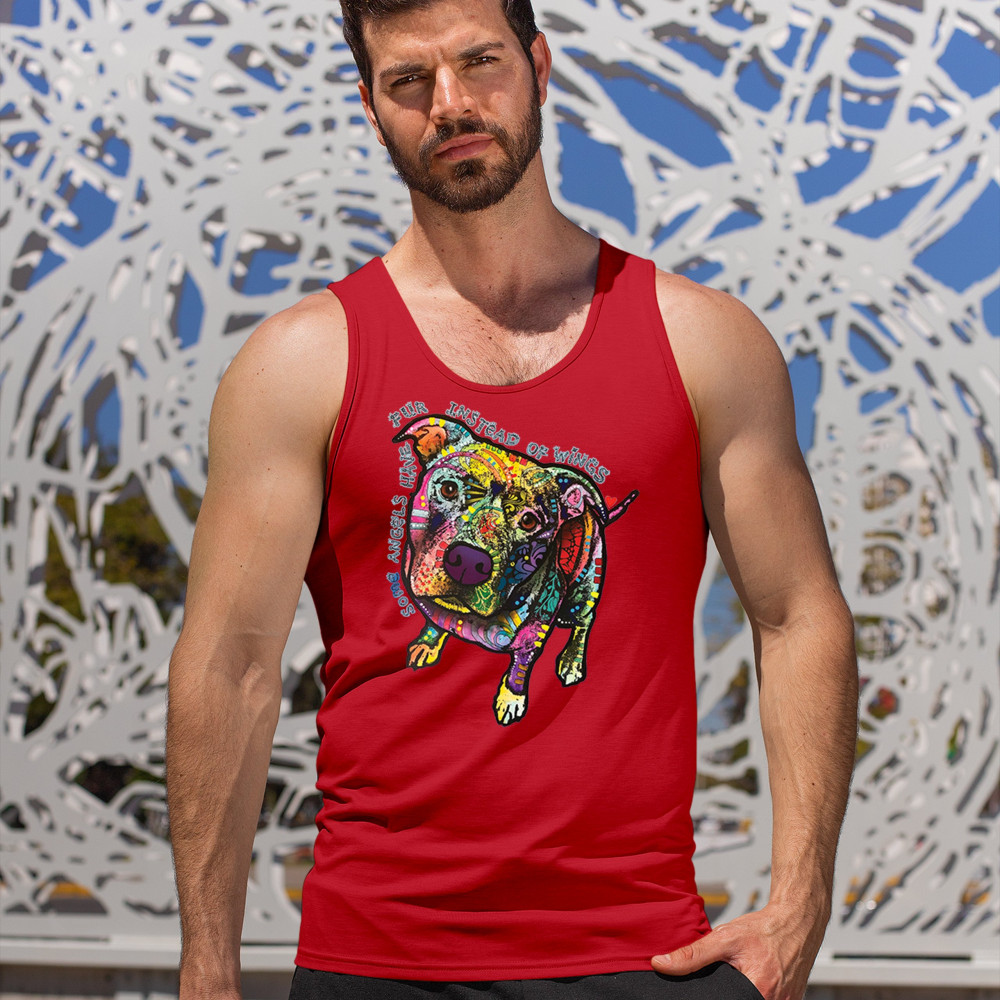 DEAN RUSSO PIT BULL tank top some angels have fur instead of wings men's top red