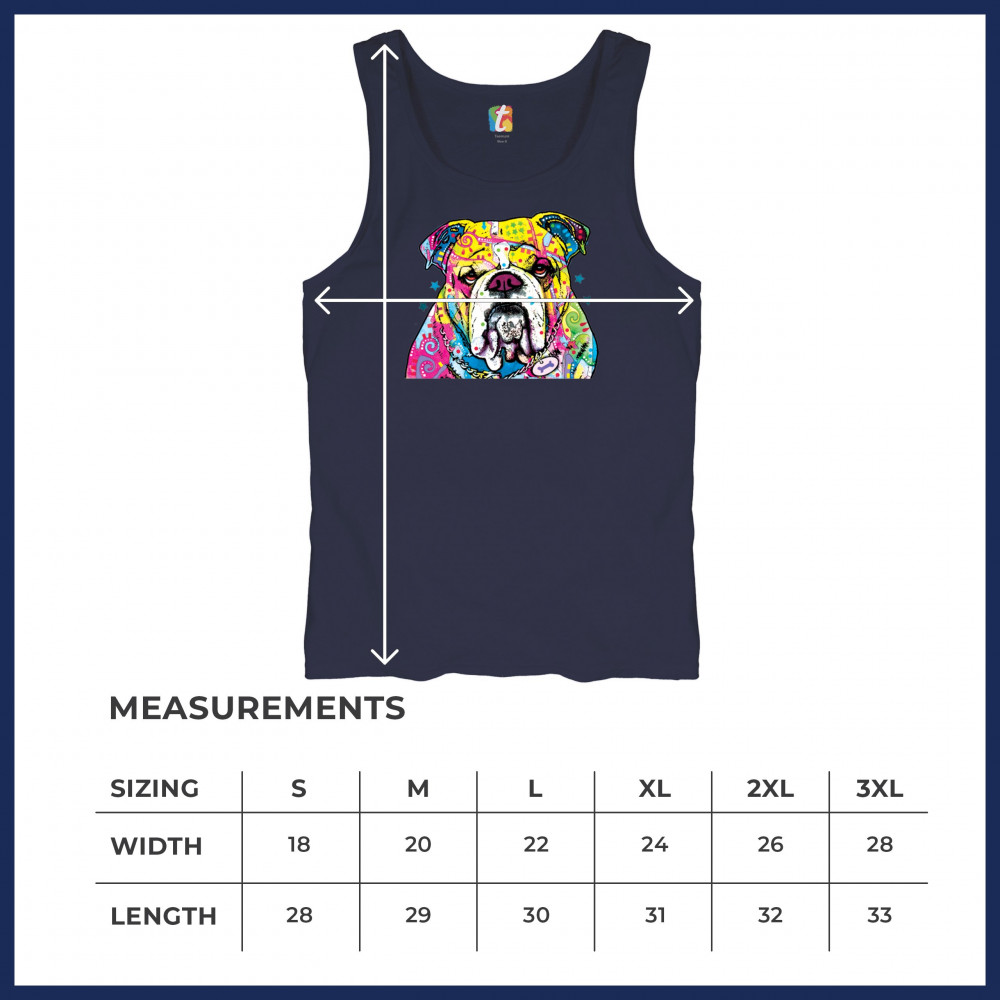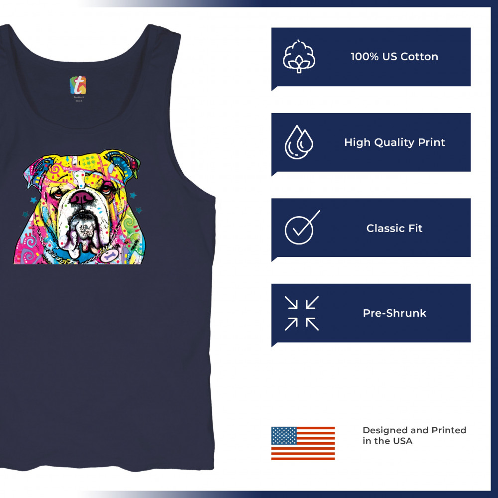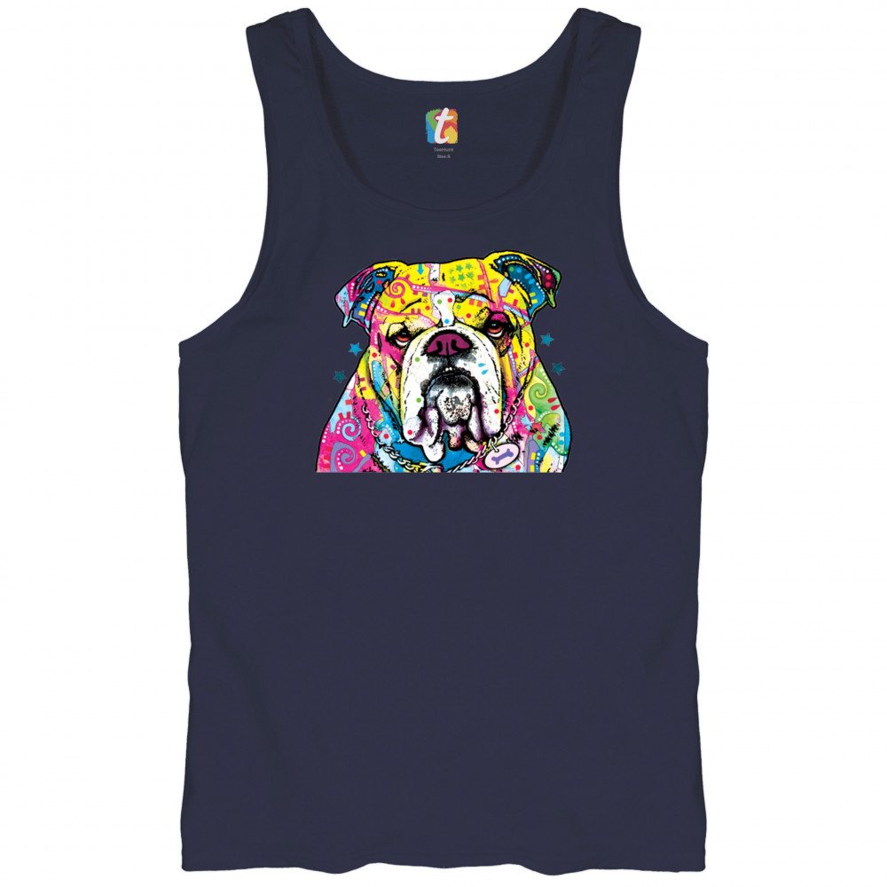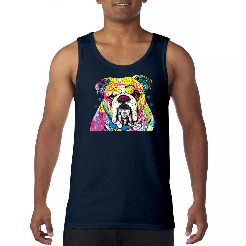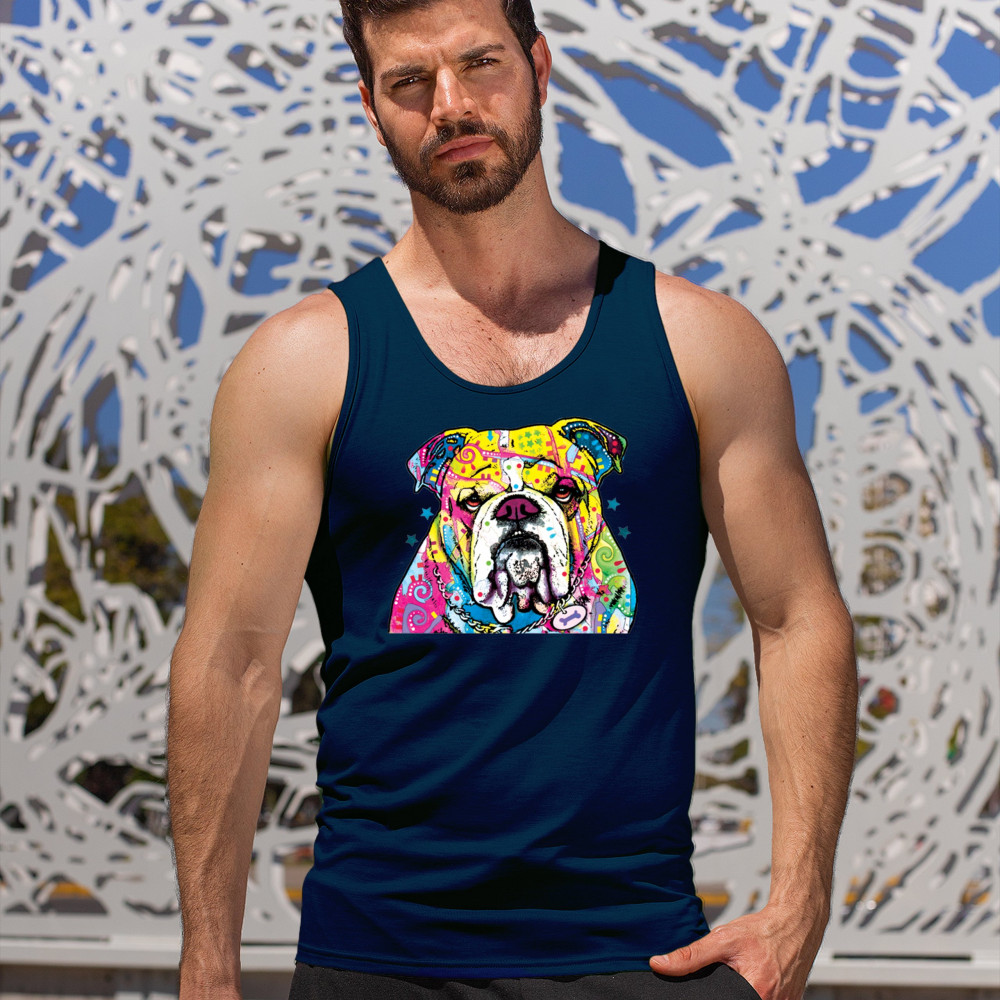 DEAN RUSSO SERIOUS BULLDOG tank top colorful dog best friend men's top navy blue