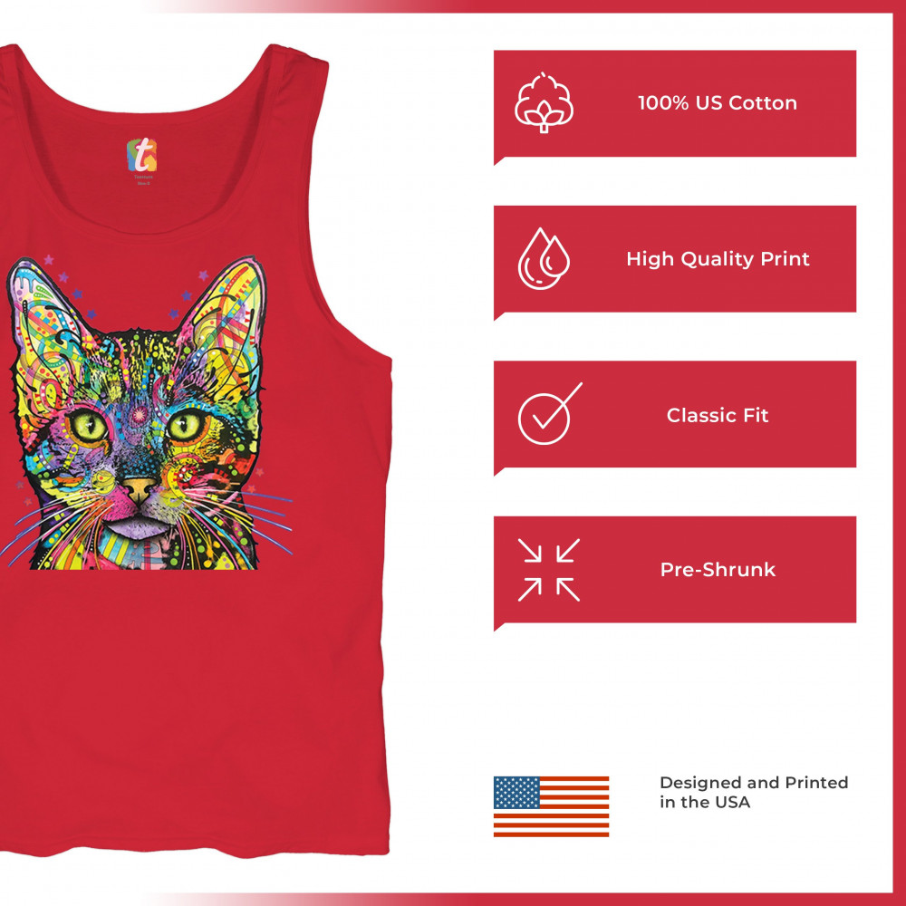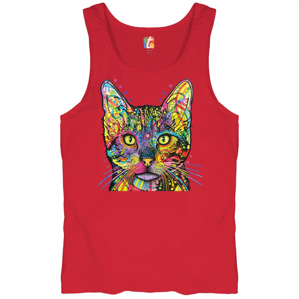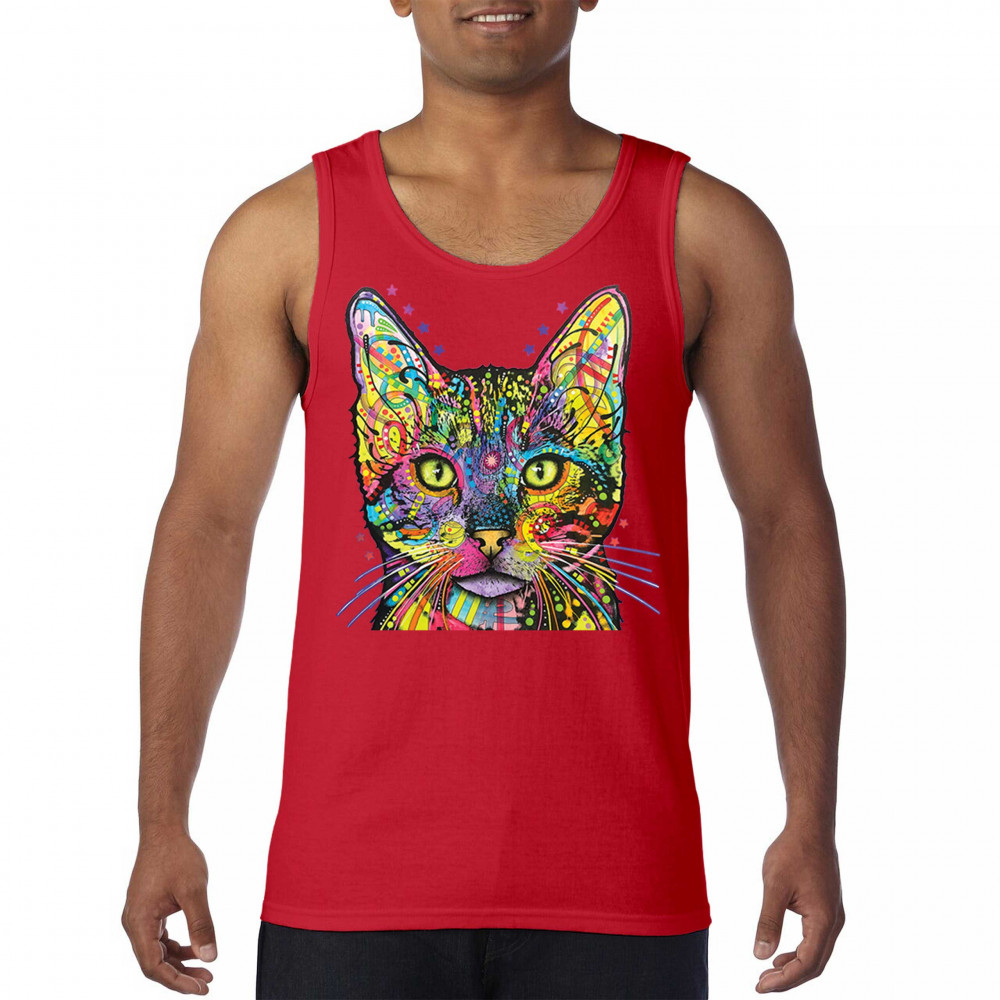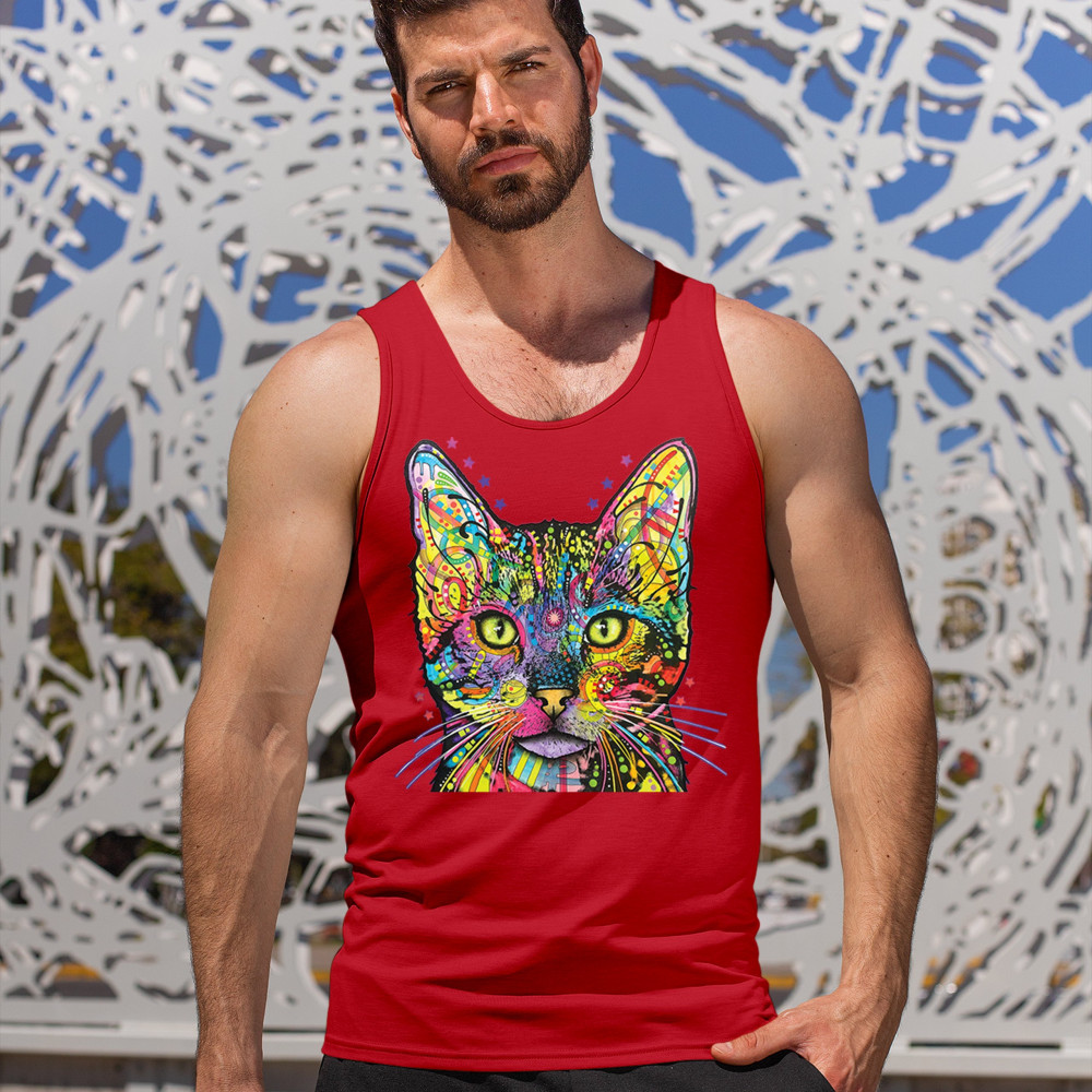 DEAN RUSSO SHIVA CAT STARE tank top neon mosaic colorful kitten eyes men's top red