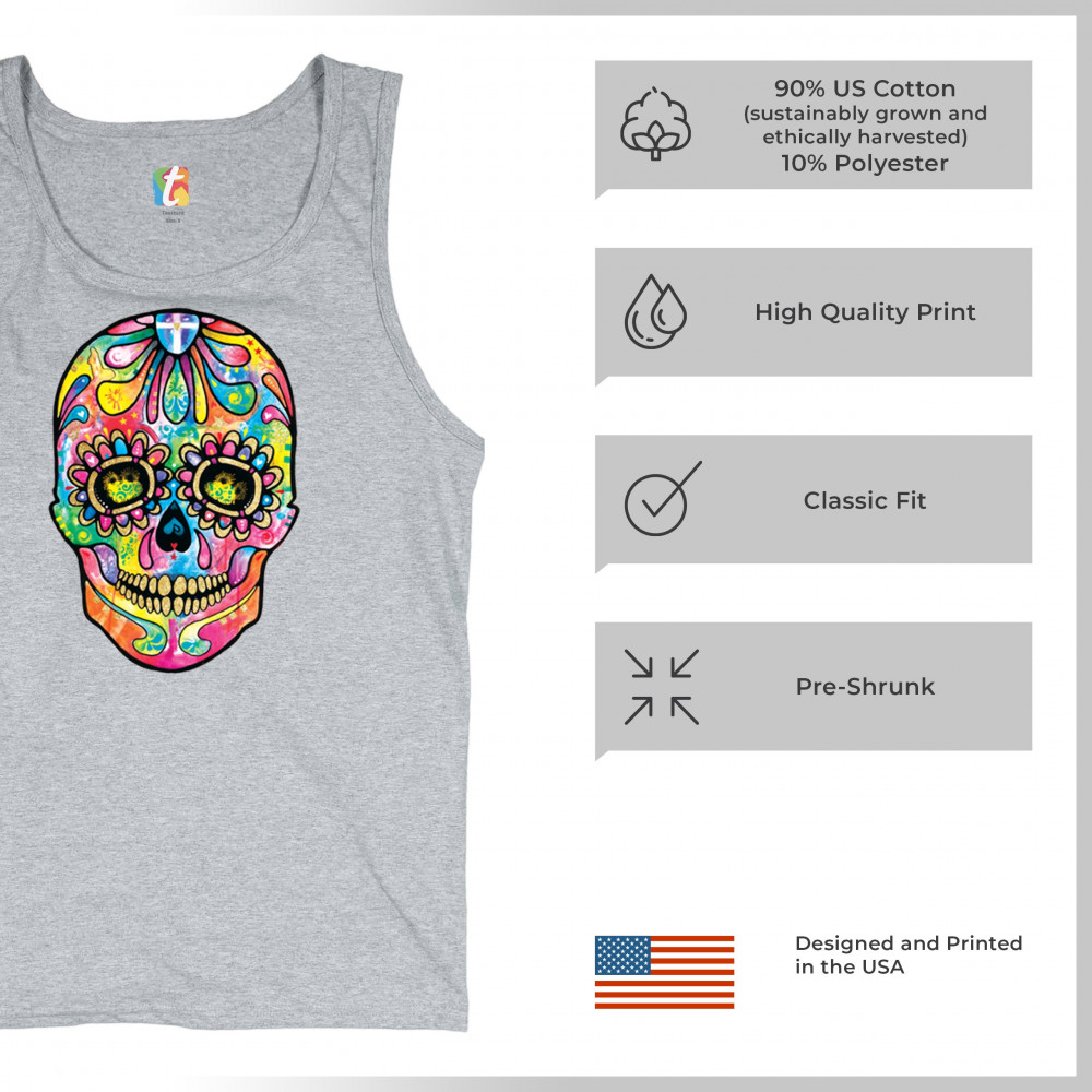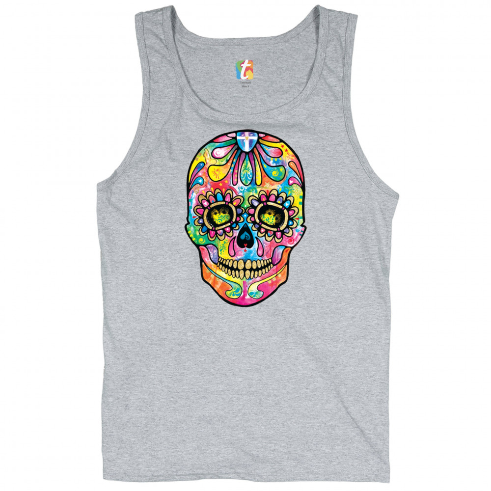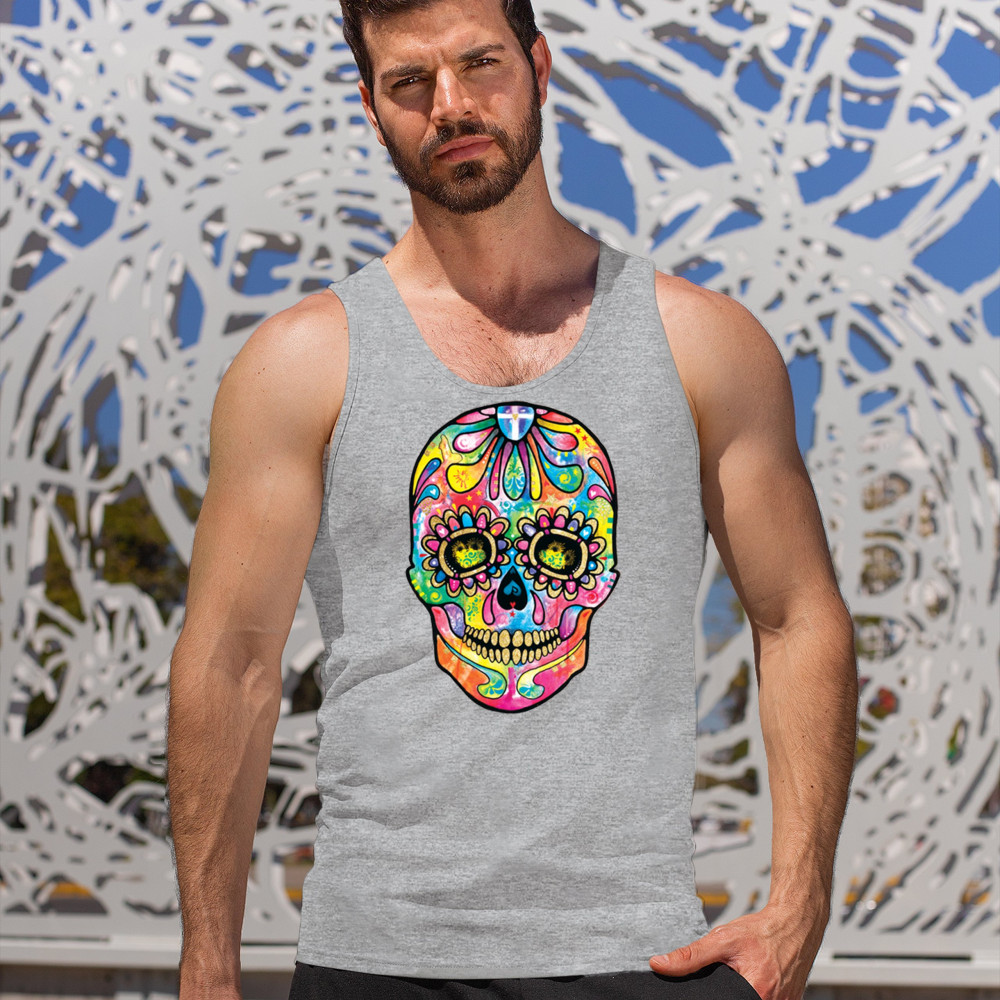DEAN RUSSO SUGAR SKULL tank top day of the dead neon calavera men's top gray