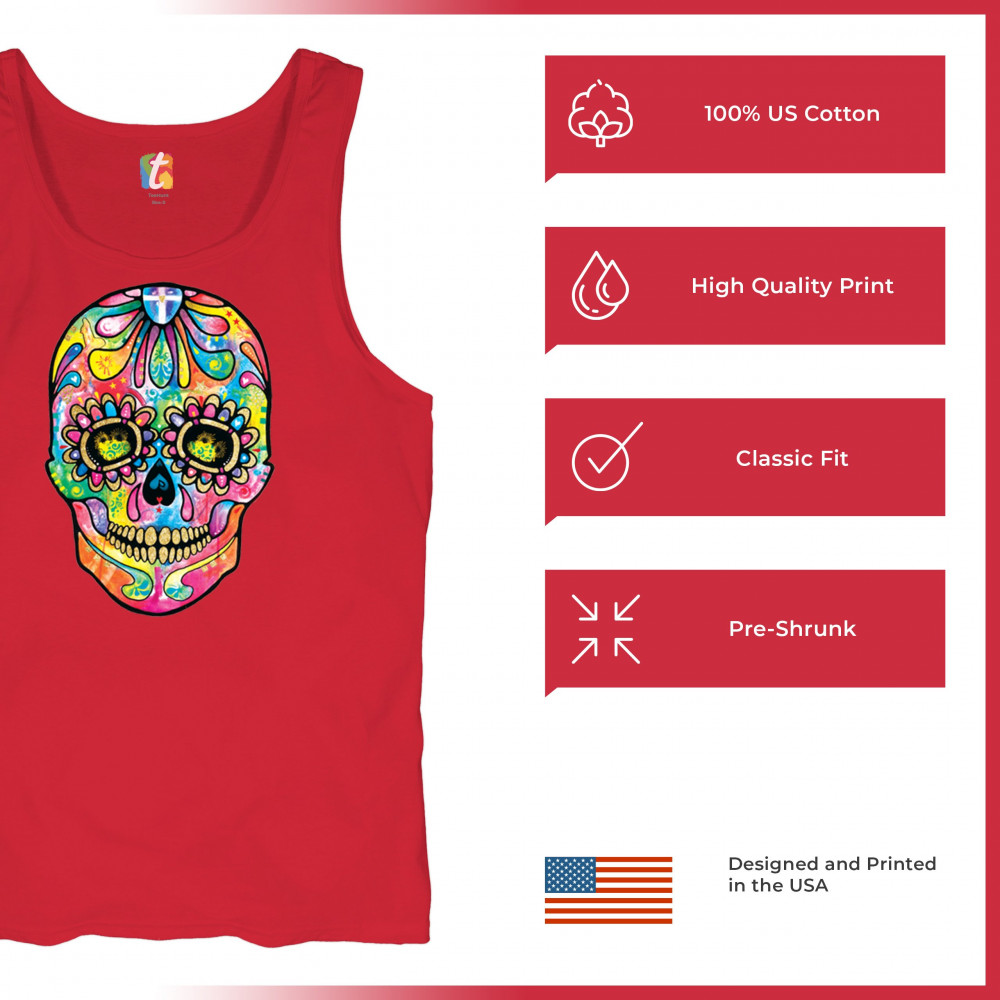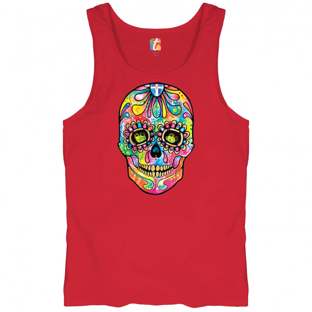 DEAN RUSSO SUGAR SKULL tank top day of the dead neon calavera men's top red