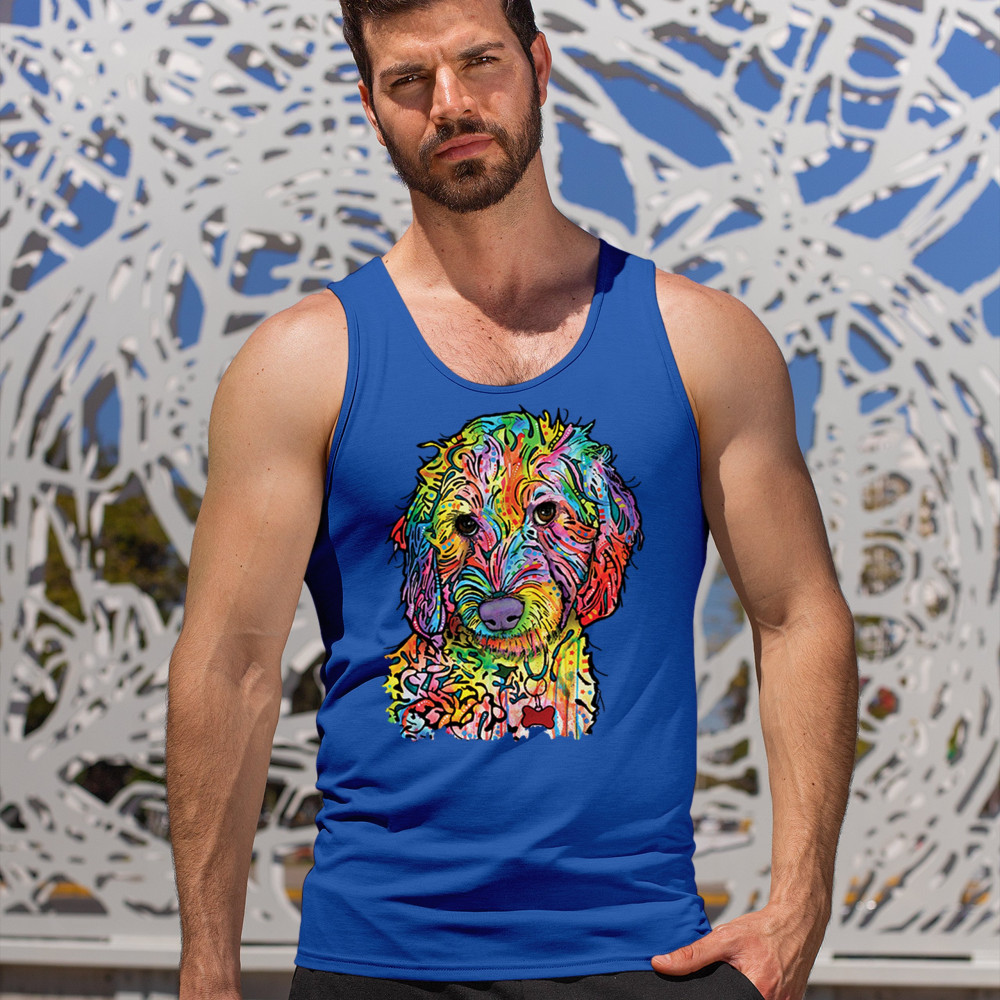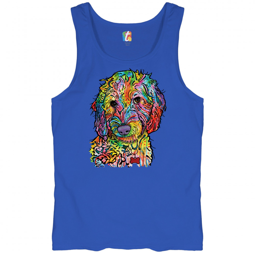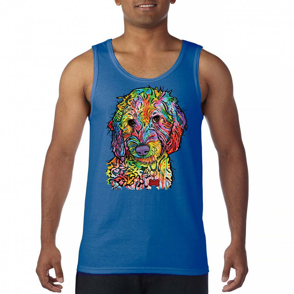 DEAN RUSSO SWEET POODLE tank top dog pattern puppy adopt pet men's top royal blue