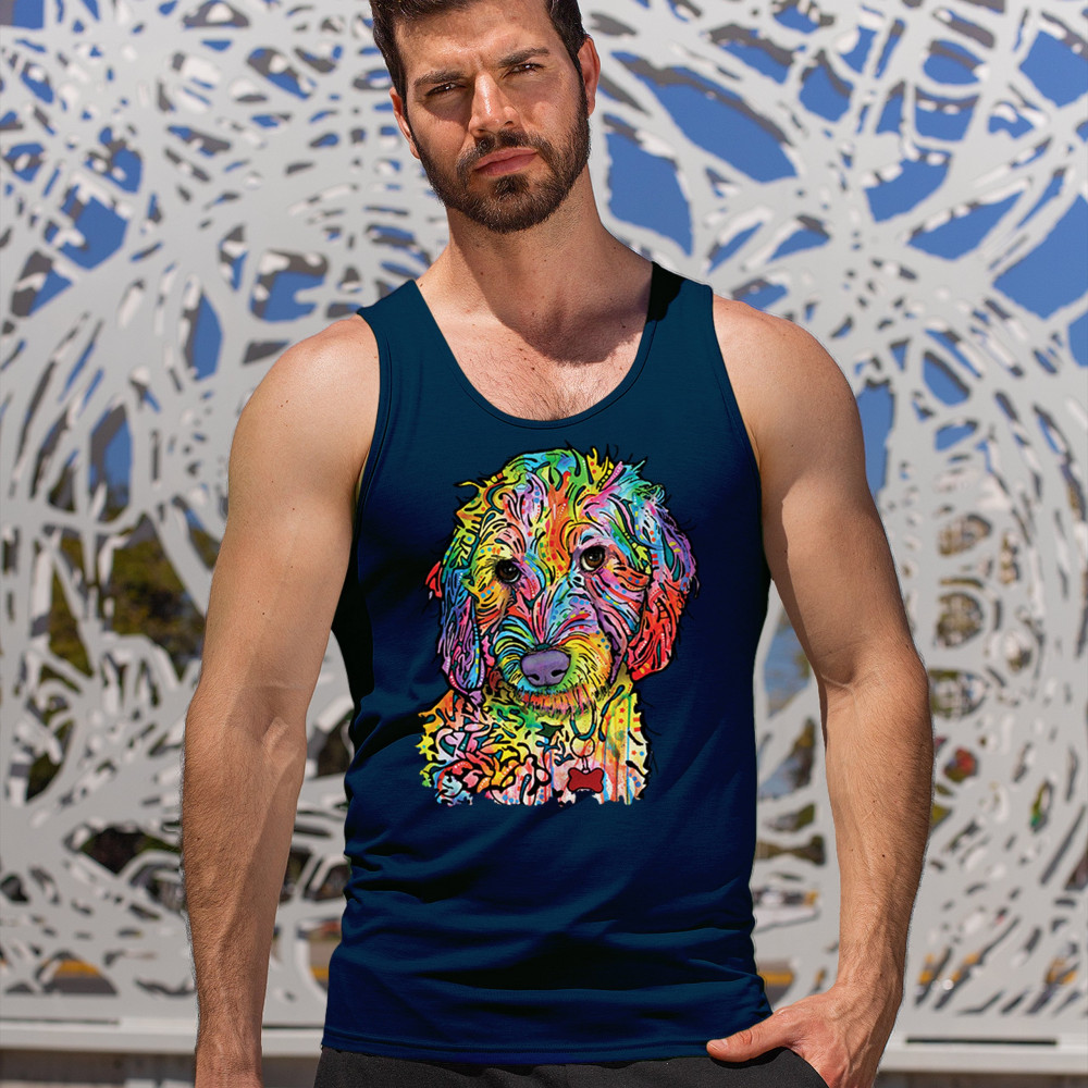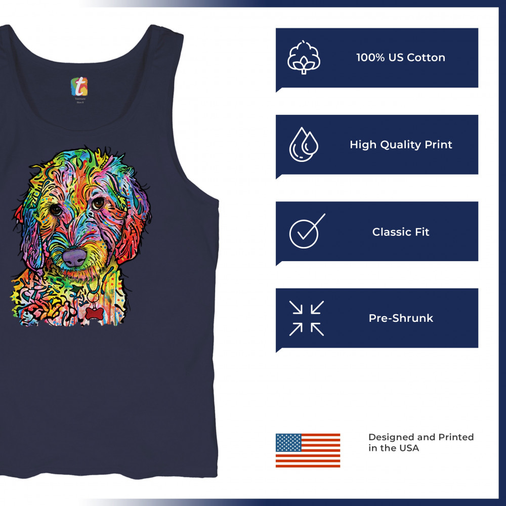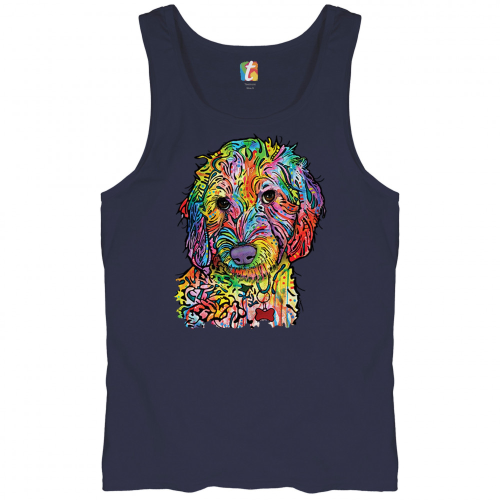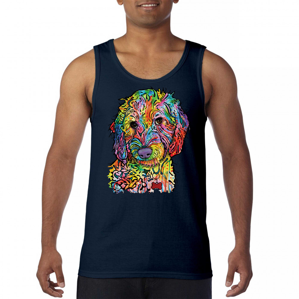 DEAN RUSSO SWEET POODLE tank top dog pattern puppy adopt pet men's top navy blue