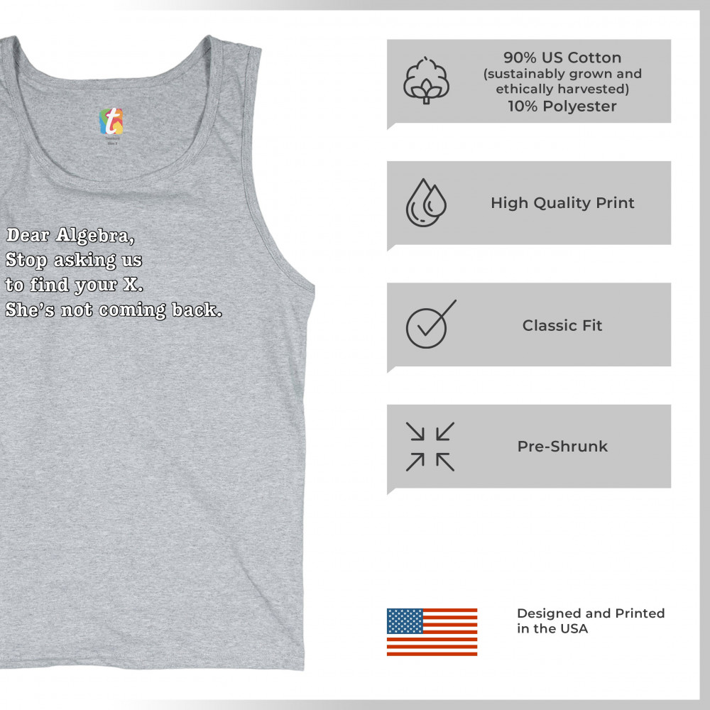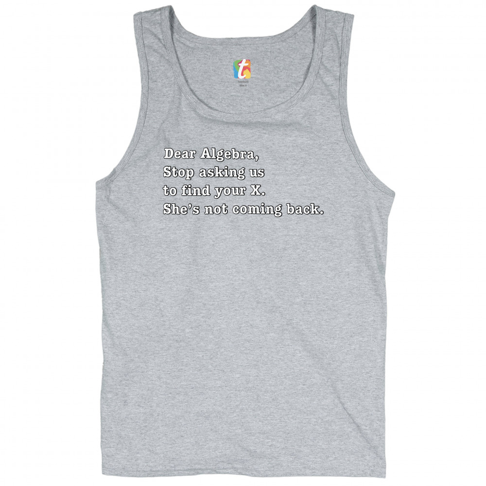 DEAR ALGEBRA STOP ASKING US TO FIND YOUR X tank top funny humor men's top gray