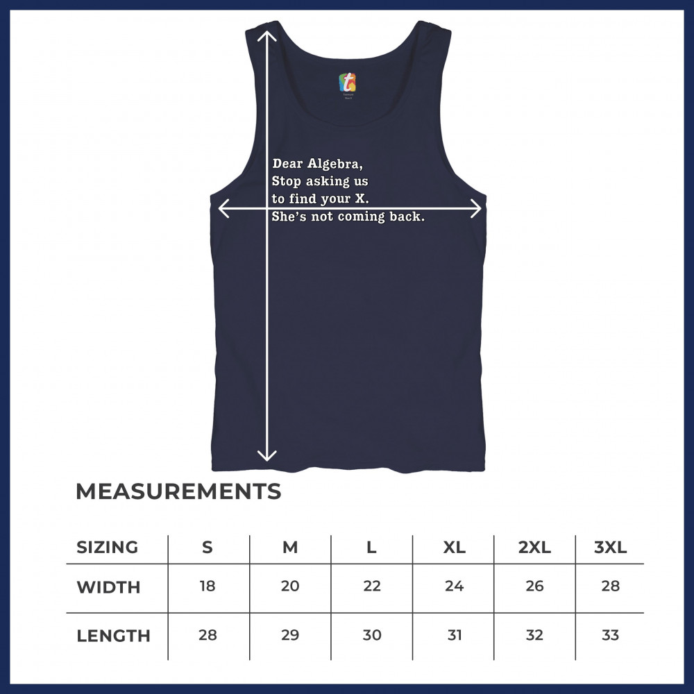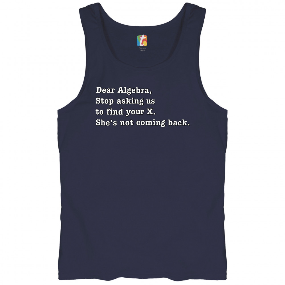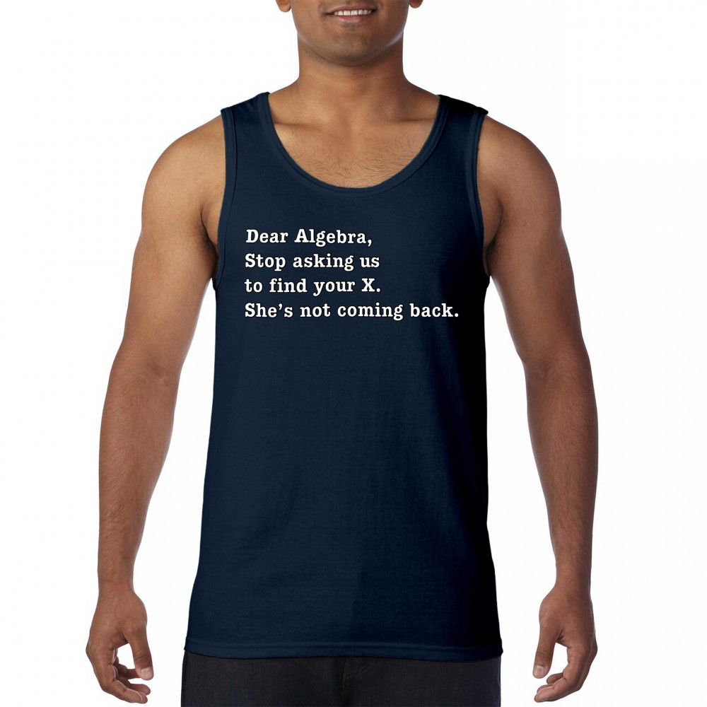 DEAR ALGEBRA STOP ASKING US TO FIND YOUR X tank top funny humor men's top navy blue