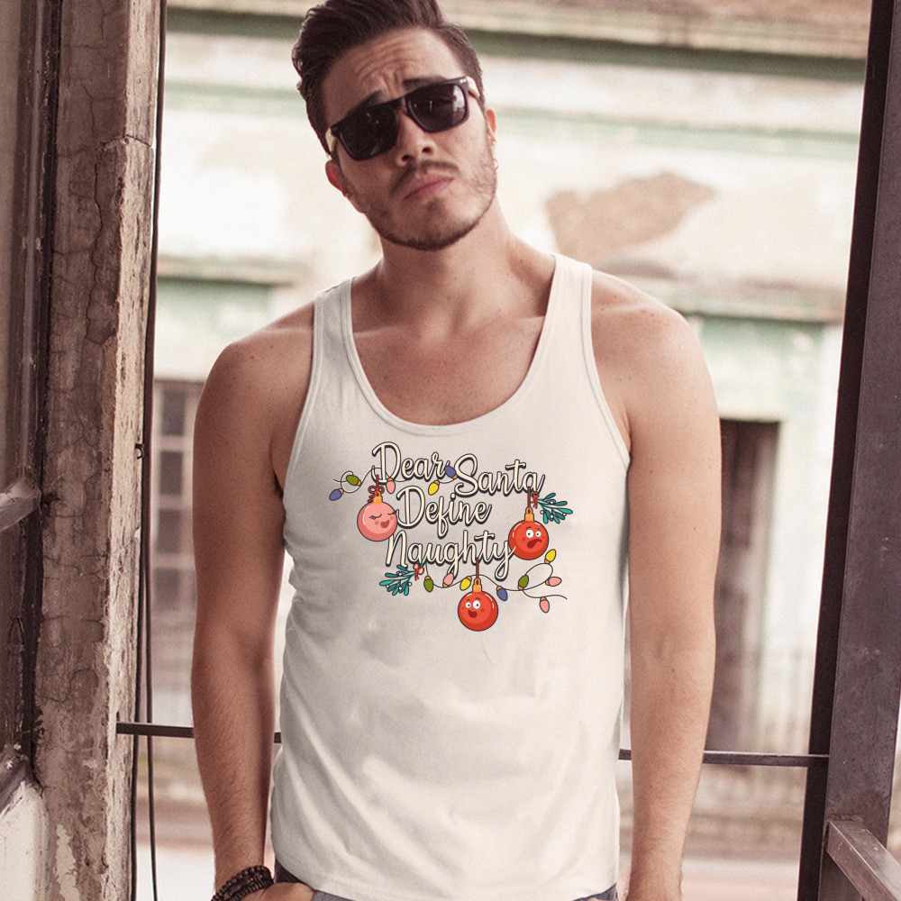 DEAR SANTA DEFINE NAUGHTY tank top merry christmas naughty or nice men's top white