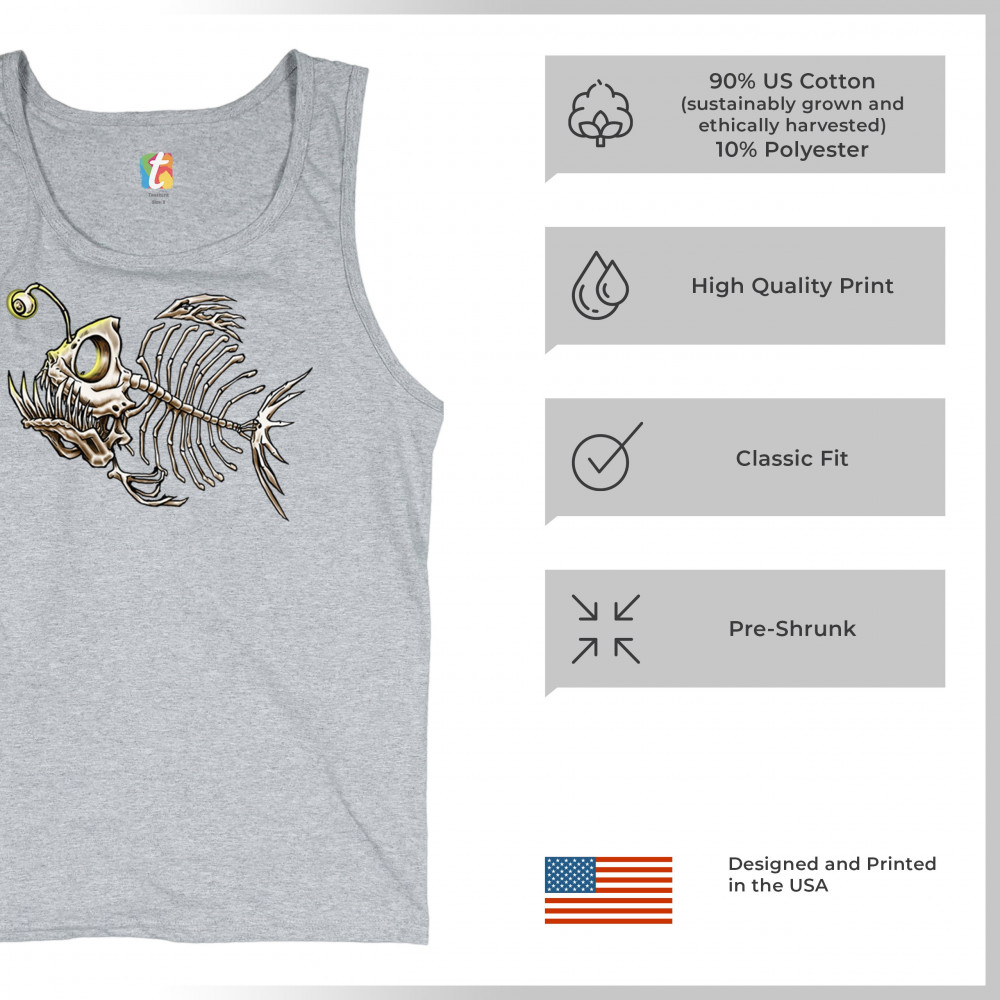 This highly detailed angler fish skeleton design features sharp bones, glowing lure eye, and deep sea terror aesthetic. Perfect for horror fans, marine biology lovers, and ocean adventurers, it combines underwater predator vibes with bone art flair. A great fit for Halloween, dive clubs, and dark sea aesthetics.