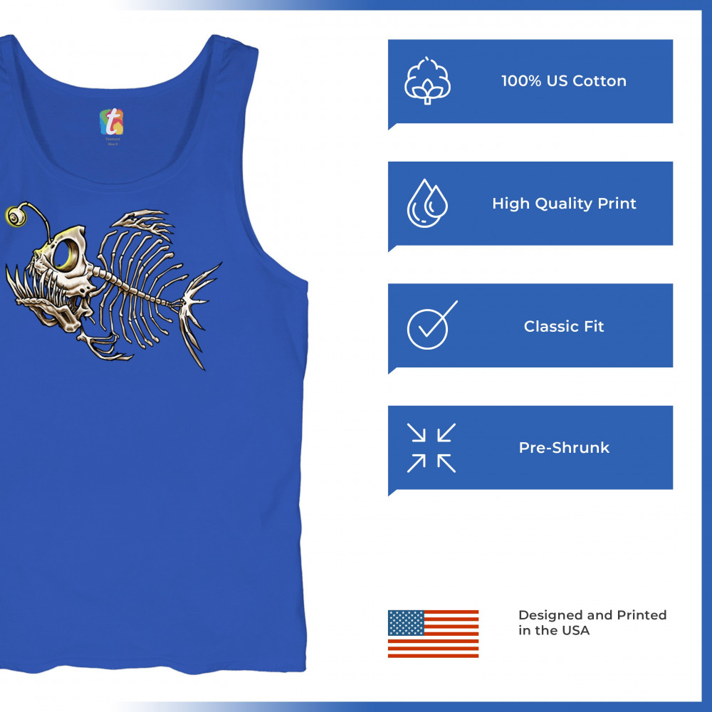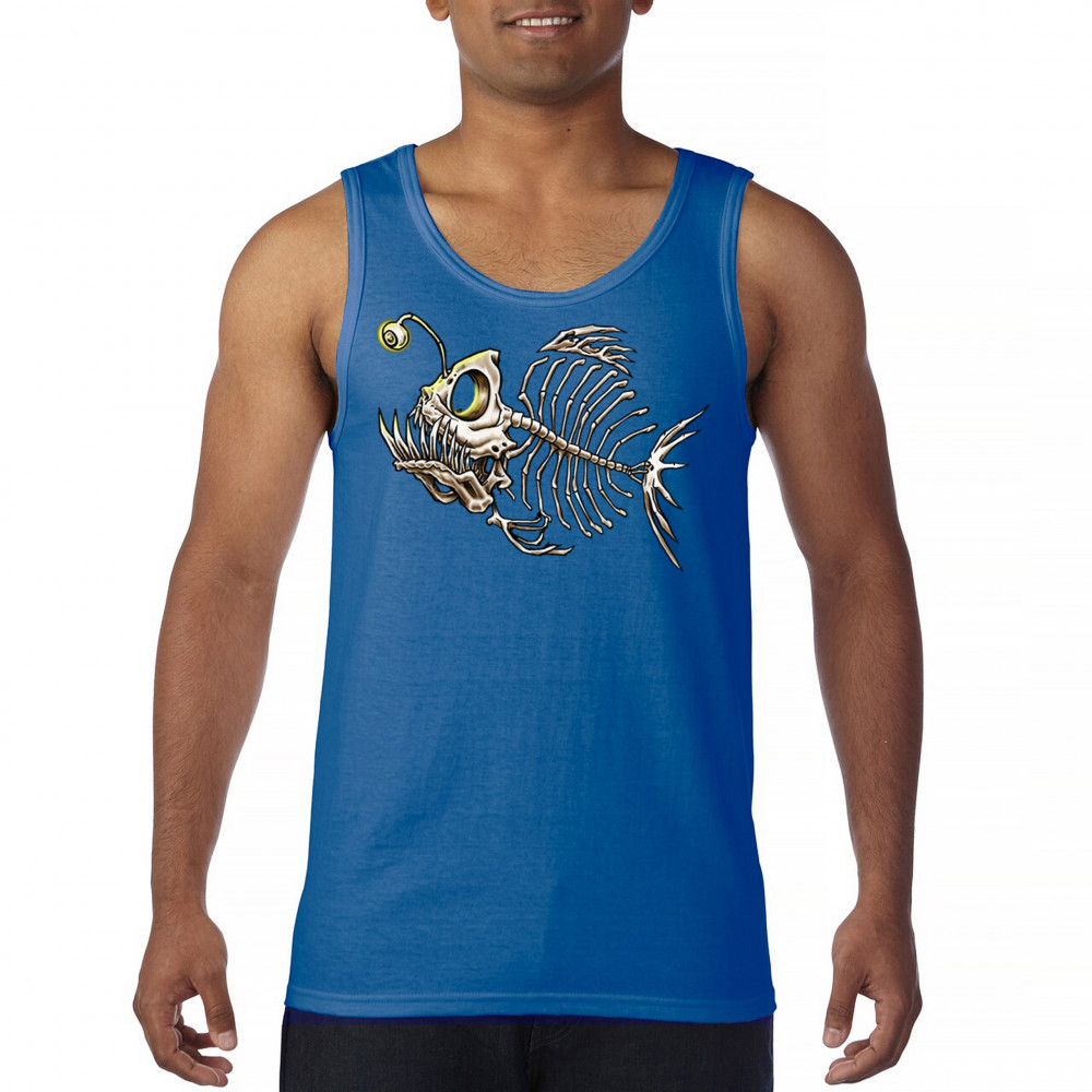 This highly detailed angler fish skeleton design features sharp bones, glowing lure eye, and deep sea terror aesthetic. Perfect for horror fans, marine biology lovers, and ocean adventurers, it combines underwater predator vibes with bone art flair. A great fit for Halloween, dive clubs, and dark sea aesthetics.