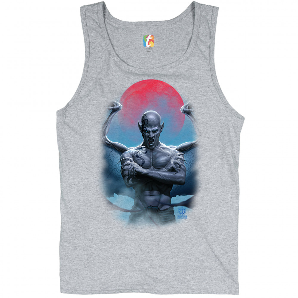 DEMON GARGOYLE tank top blood moon scary halloween monster men's top gray