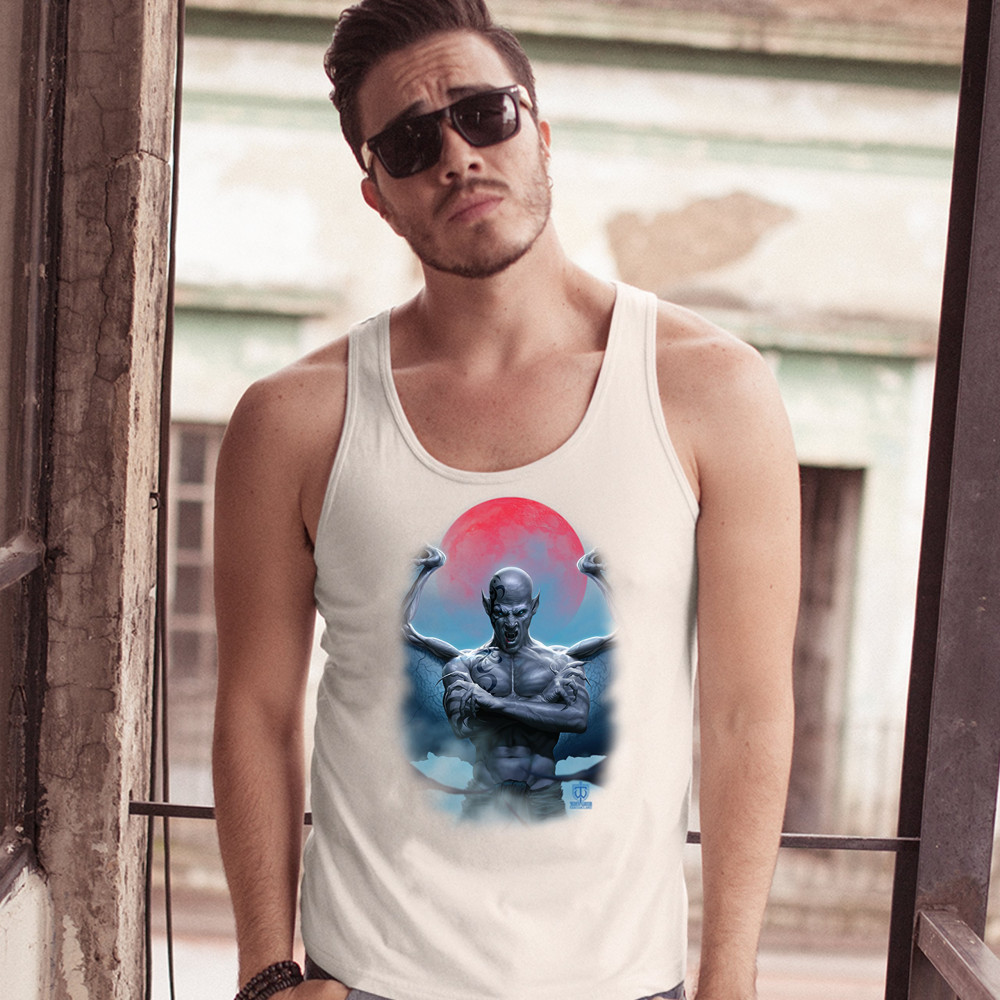 DEMON GARGOYLE tank top blood moon scary halloween monster men's top white