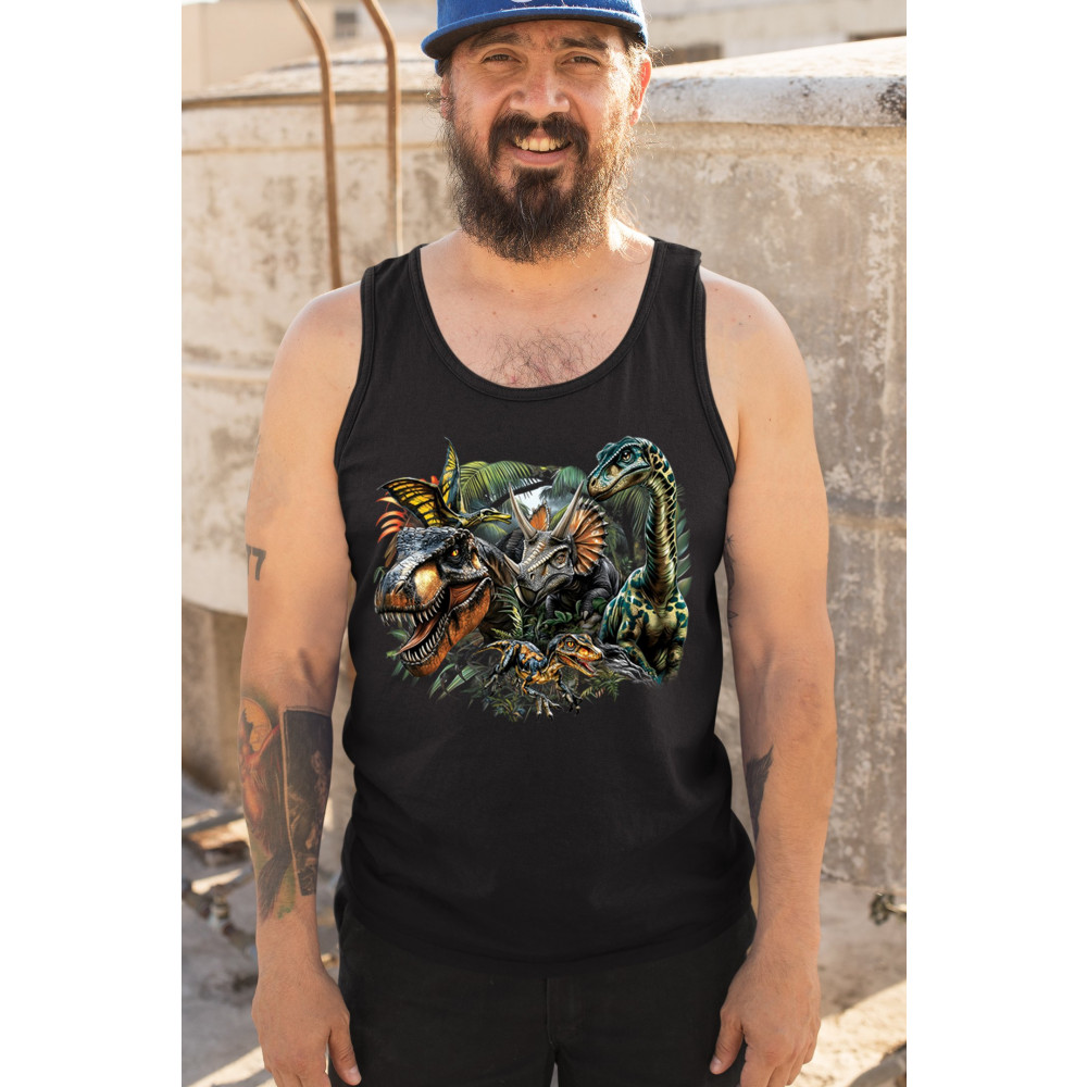 Get prehistoric with this electrifying design featuring a full dino squad in vibrant jungle detail. Includes t rex, triceratops, raptor, brachiosaurus, and pteranodon, all surrounded by tropical foliage. A perfect pick for dinosaur fans, fossil hunters, Jurassic birthday parties, or anyone who loves bold, wild, nature-themed art.