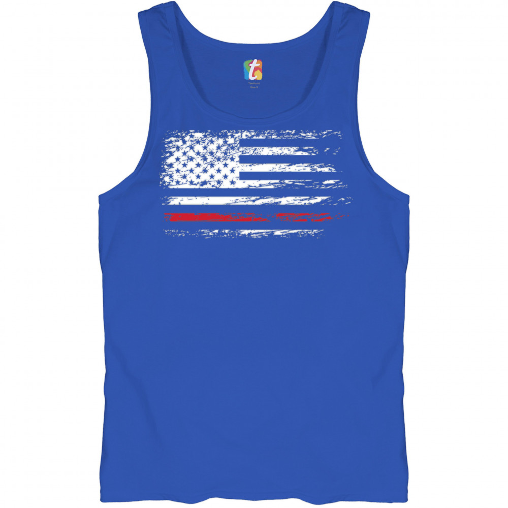 DISTRESSED AMERICAN FLAG tank top thind red line firefighter men's top royal blue