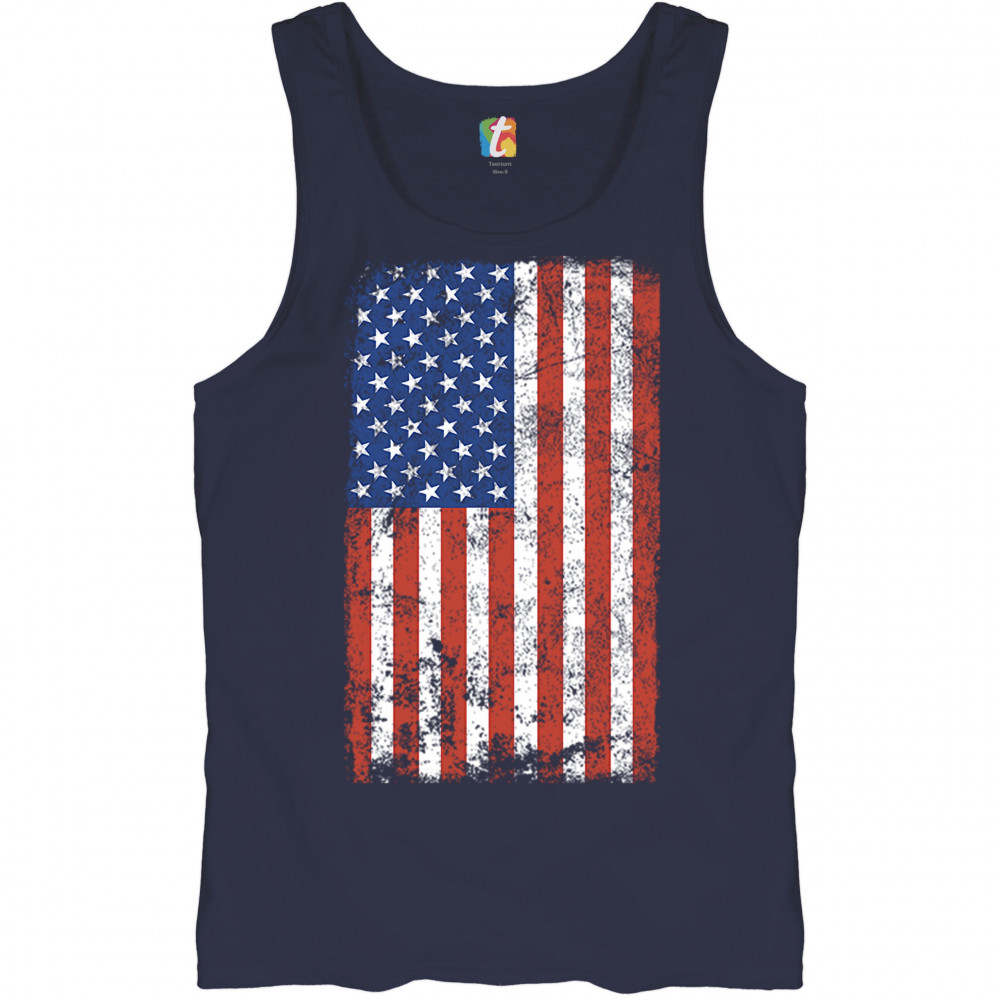 DISTRESSED GRUNGE AMERICAN FLAG tank top vintage 4th of july usa men's top navy blue